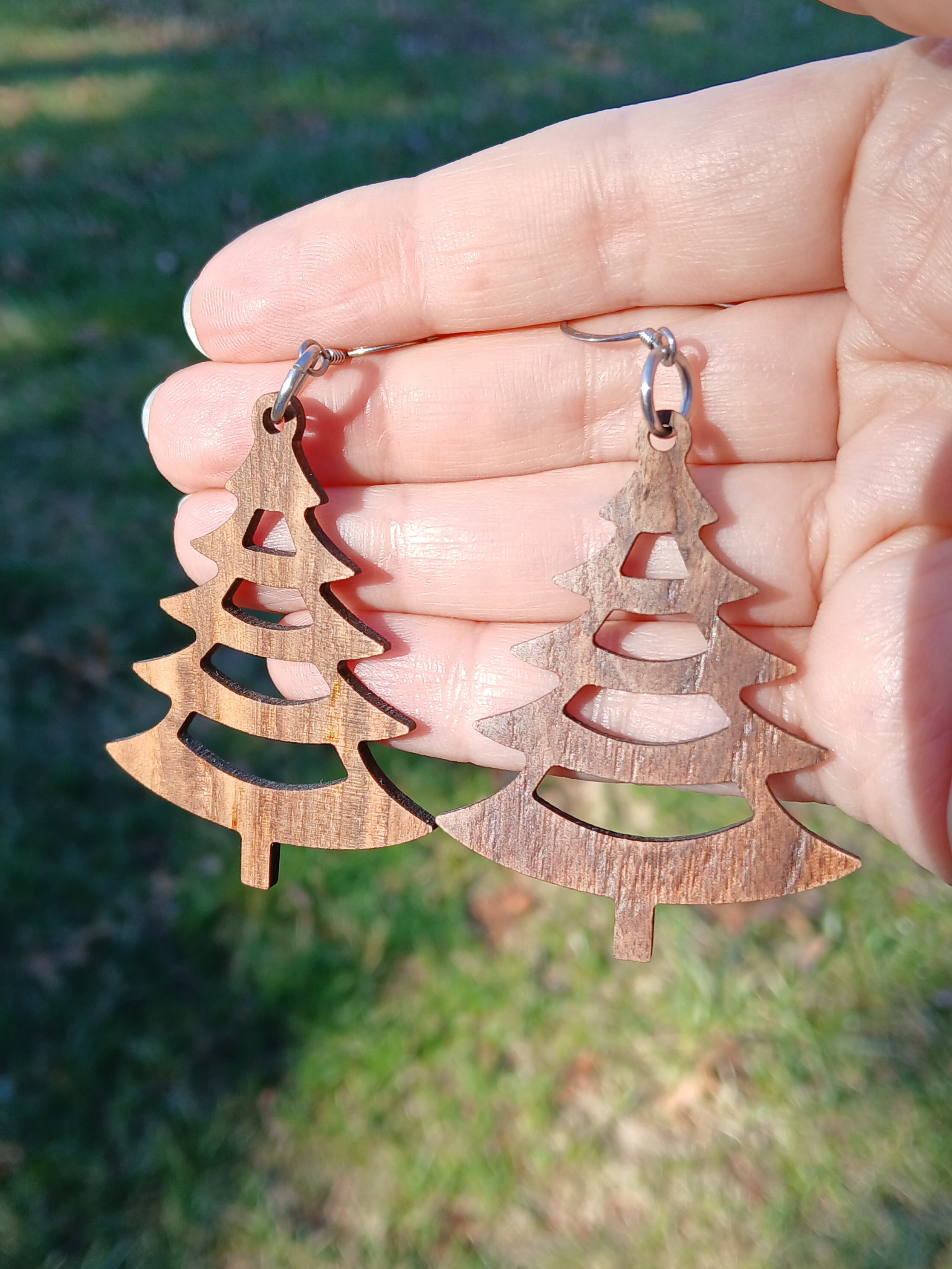 A lasercut minimalist Christmas tree in Walnut. Rubbed with tung oil to give a soft, matte finish. 2.75 inches (68mm) long from the top of the surgical steel hook.