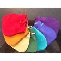 They come in many colors and I can do custom colors as long as I can find the appropriate leather. The leather is generally a suede finished top grain pigskin, but may vary and be a smooth cowhide as well. If you have a specific preference you can message me to see what I have available.
