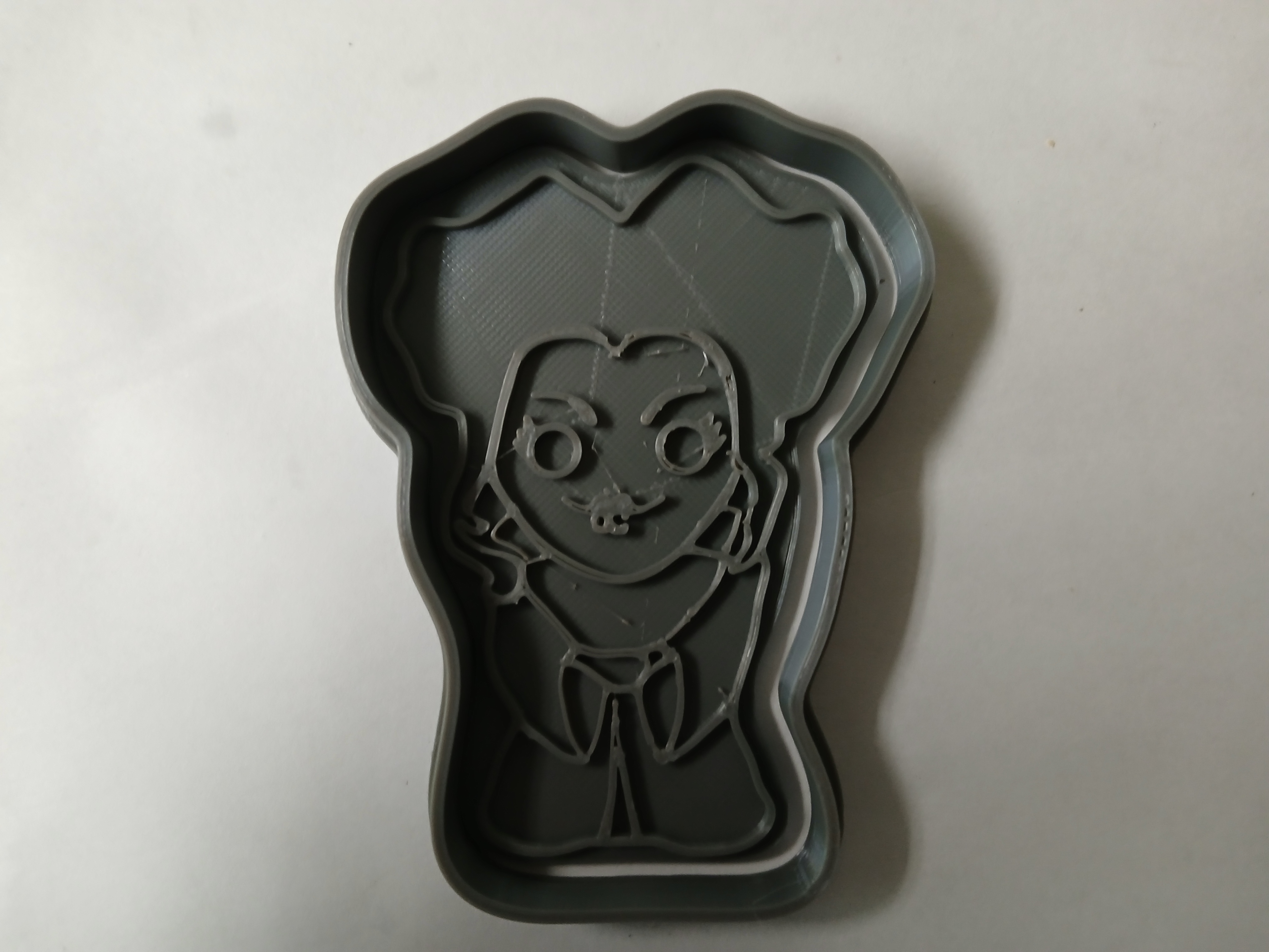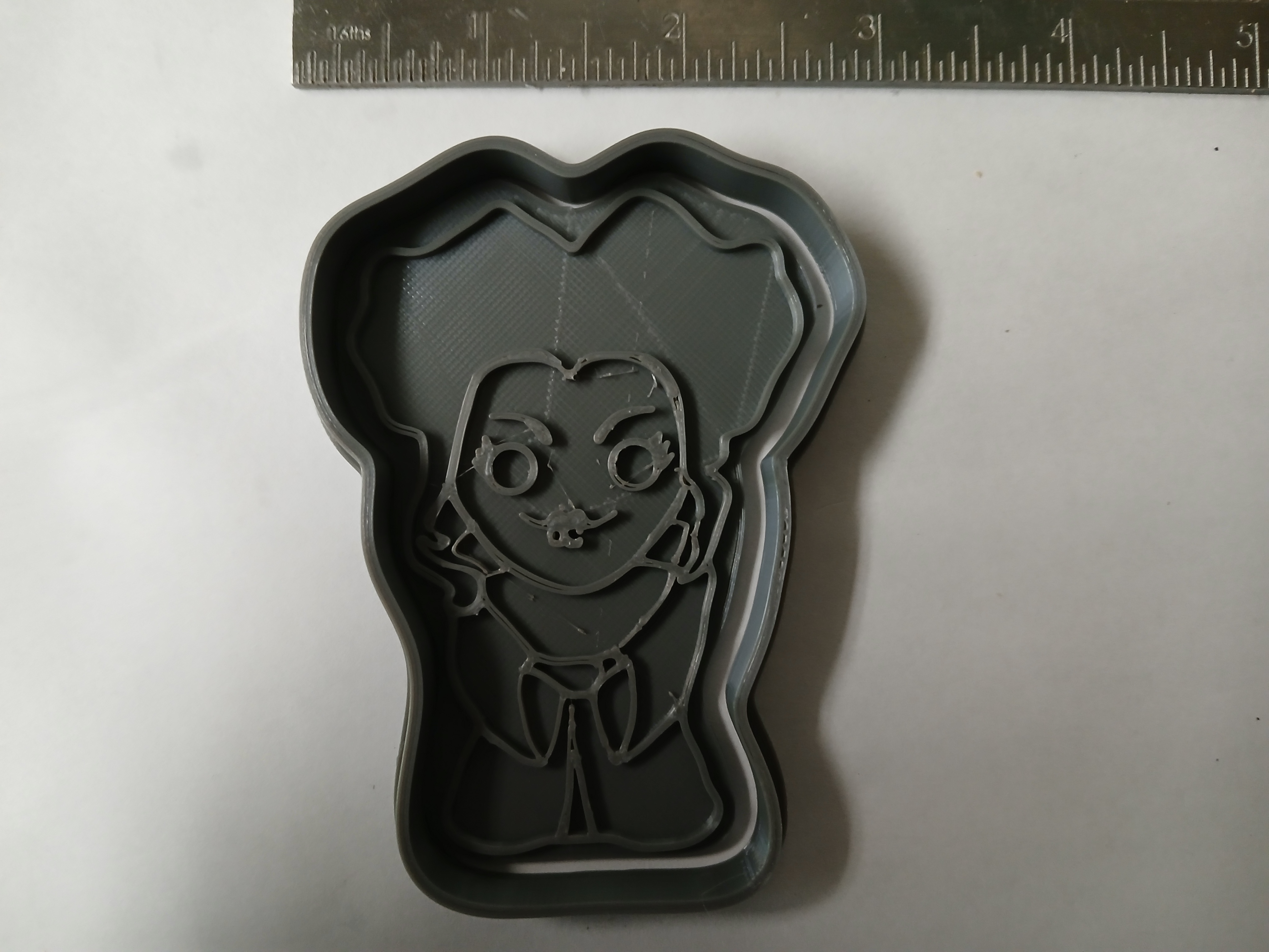 Key to a good witch's coven is a talented leader. This isn't her. Instead, Hocus Pocus is lead by someone who really should never have been given a magic book and allowed to have power. This unique cookie cutter features her insane hair and buck teeth. Perfectly fitting for the Hocus Pocus set of cookie cutters.