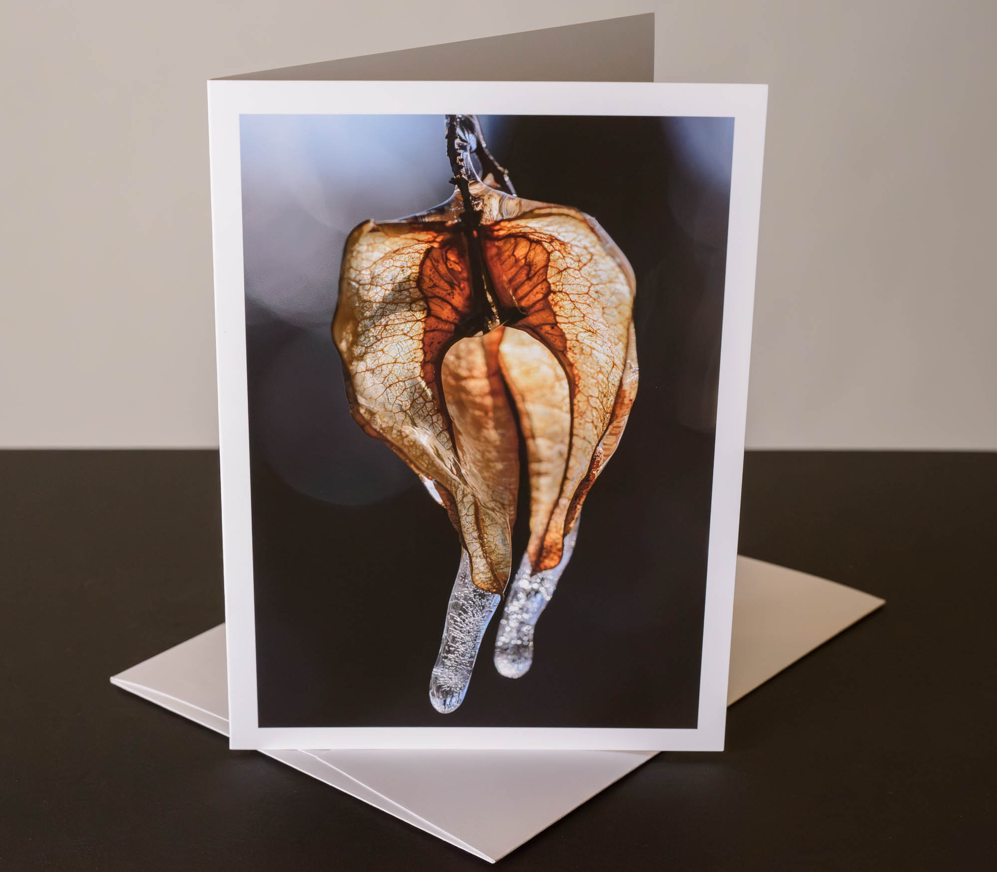 Photo greeting cards of Winter’s Ice Sculptures blank inside and fountain pen friendly. You will find icicles, ice crystals, sheets of ice. These are cards for all occasions. Pen not included.