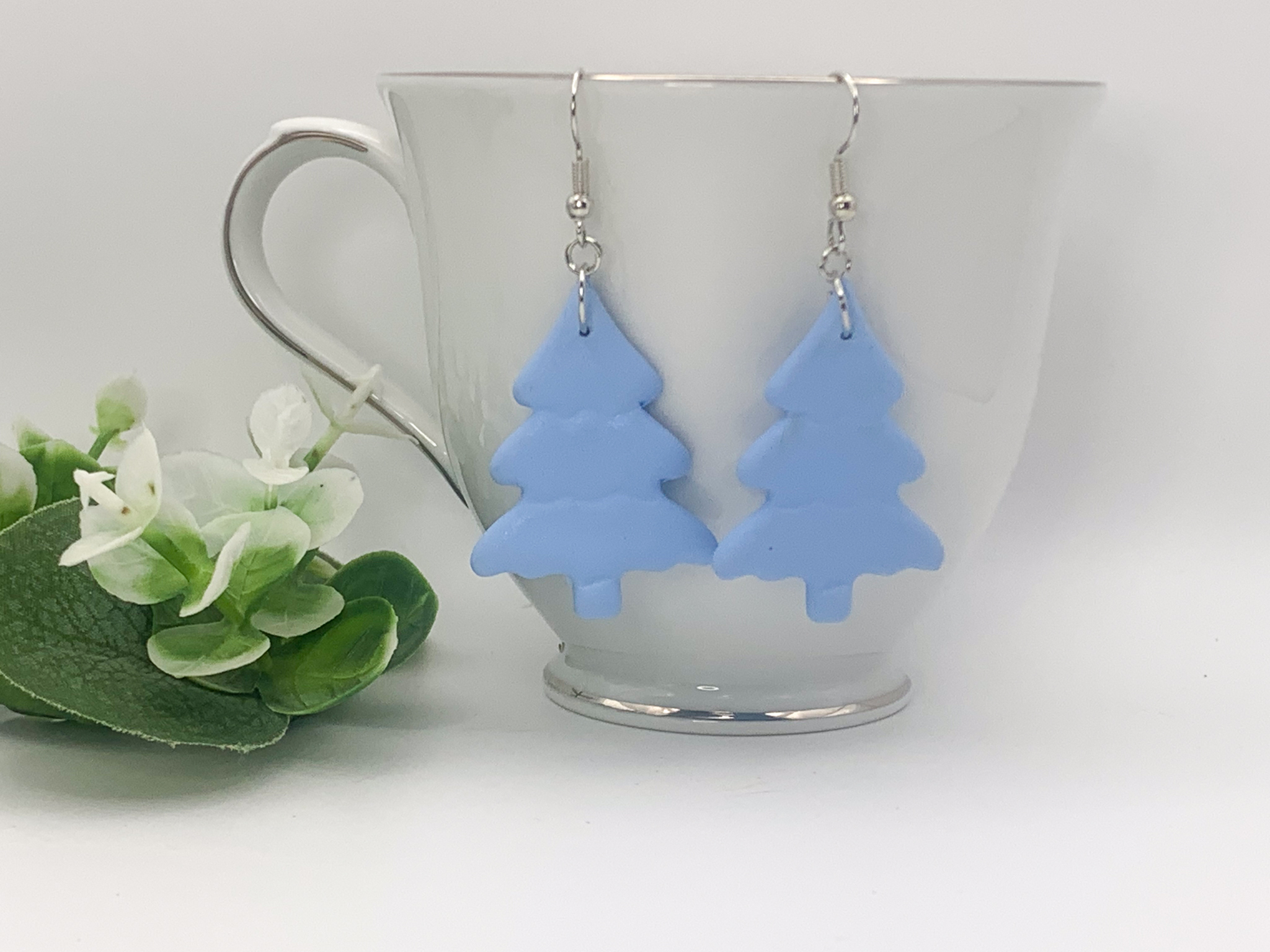 Add a dreamy touch to your holiday look with these pastel blue Christmas tree earrings! Simple, chic, and handmade for a modern winter vibe.