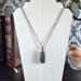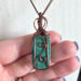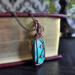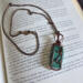 Chrysocolla is a bit of a softer stone so treat the pendant with care. Also, it's dangerous if you put it in your mouth. Don't know why you would try, but please don't anyway.