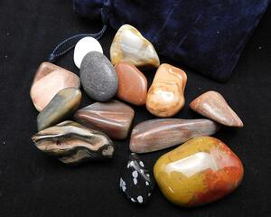 Free form, “tumbled” natural stone, approx. 1 ½” X 1”, polished all over.