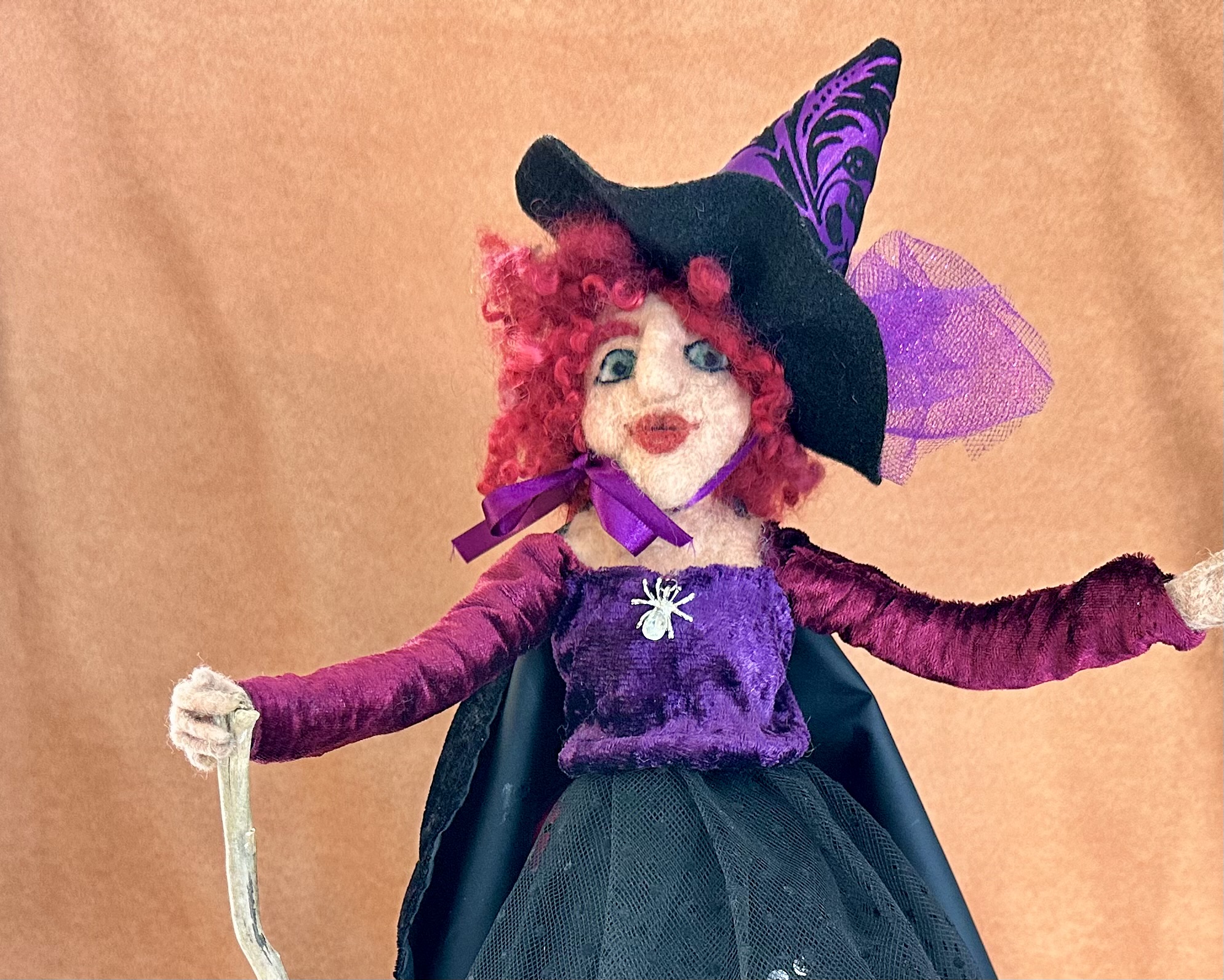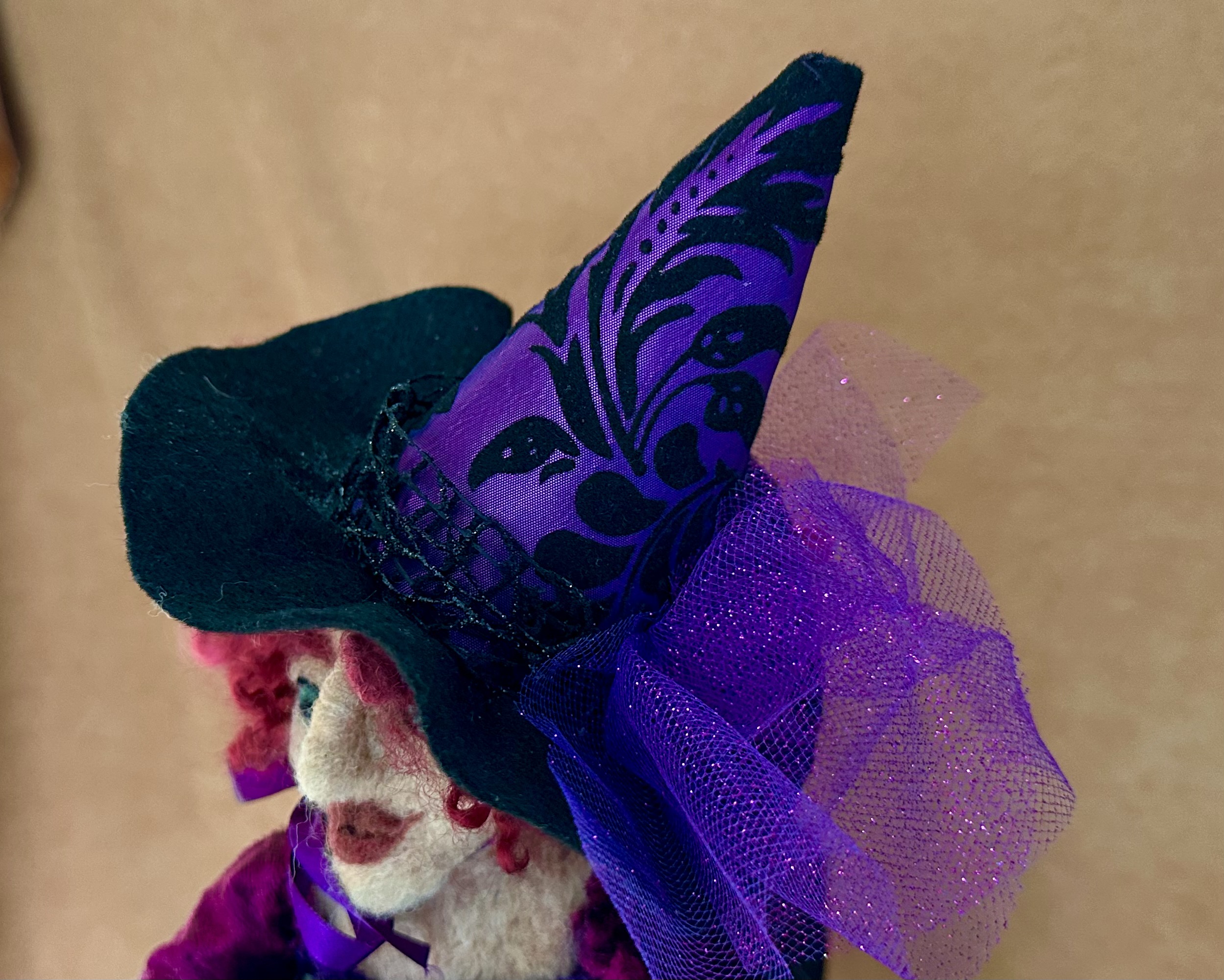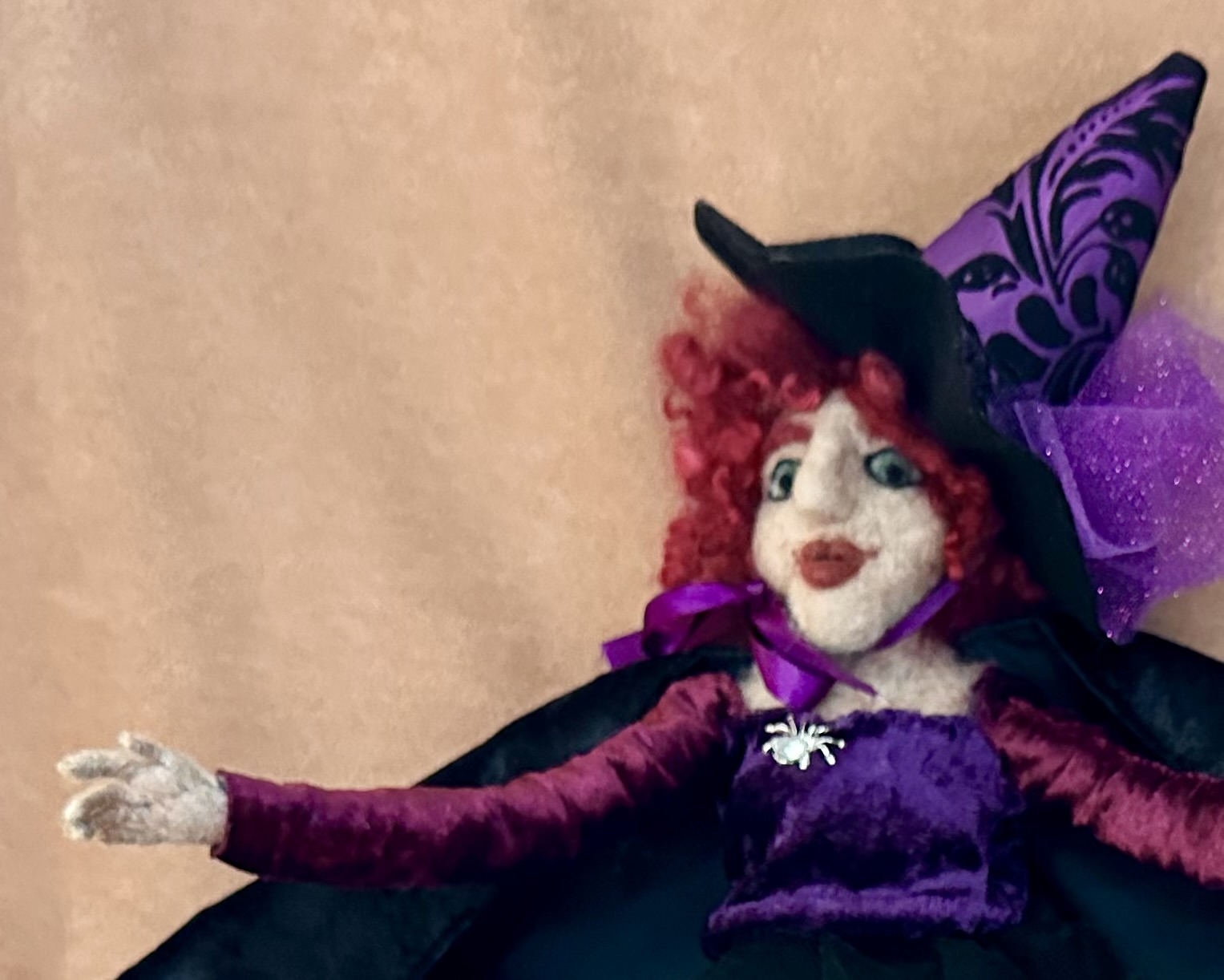 This one-of-a-kind needle felted witch stands approximately 20" tall and is completely handmade using traditional needle felting and doll making techniques.