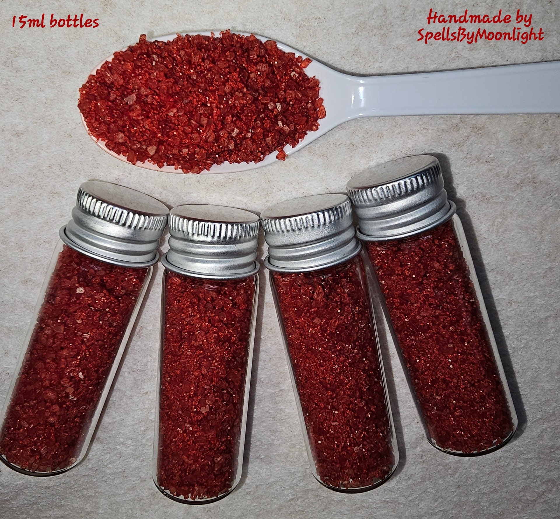 I make my witch salts in small batches. This Red Salt can be used in spells for love, self love, romance, lust and passion. Use in spells, rituals, spell jars & to dress candles.