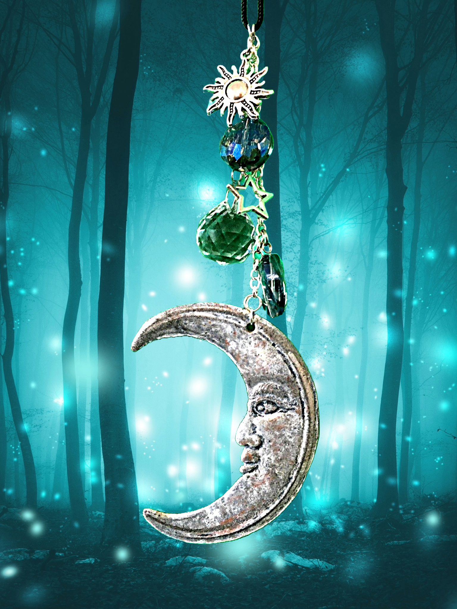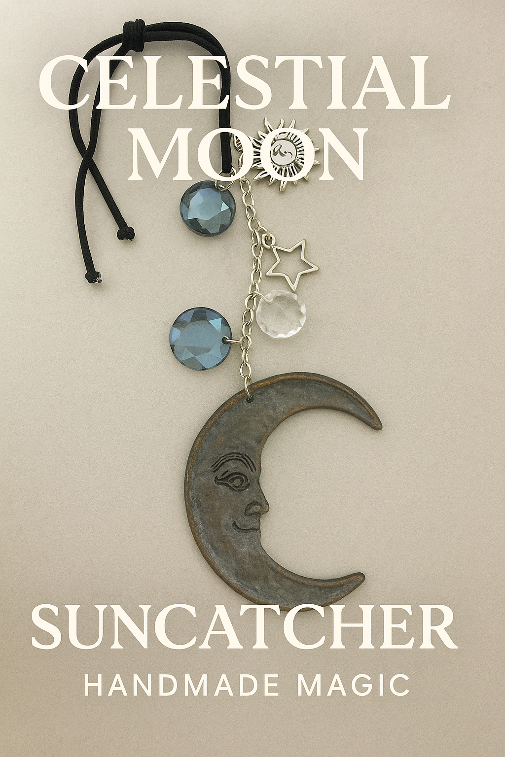 A beautiful handmade moon suncatcher perfect for witchy décor, crystal lovers, celestial décor fans, and anyone who wants magical light and positive energy in their space.