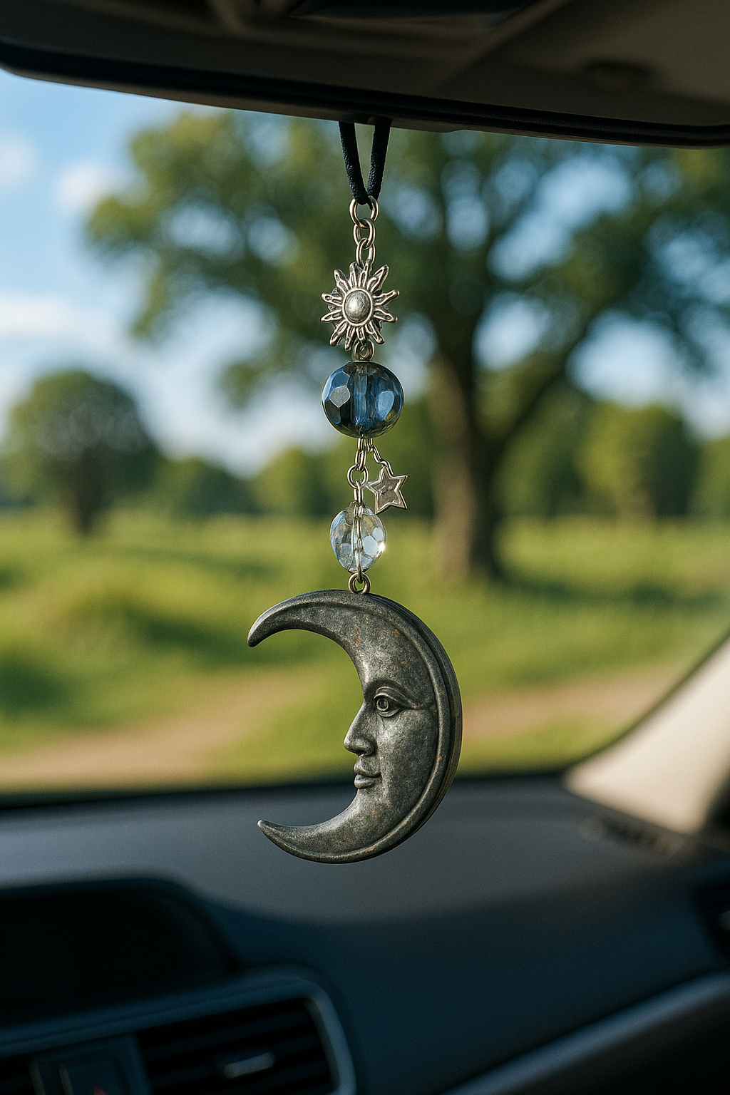 Each celestial car charm is lovingly handmade. The process begins with selecting high-quality materials, including silver-tone charms and vibrant glass beads. The crescent moon and sun charms are carefully chosen for their intricate details.