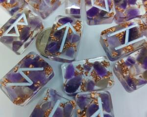 Light Amethyst & Copper Elder Futhark Resin Runes