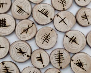 Celtic Ogham Stave set , small round wood slice, Runes by KJ
