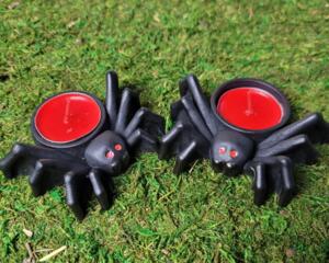 Black Widow Spider tealight holder set of 2; Halloween decora...