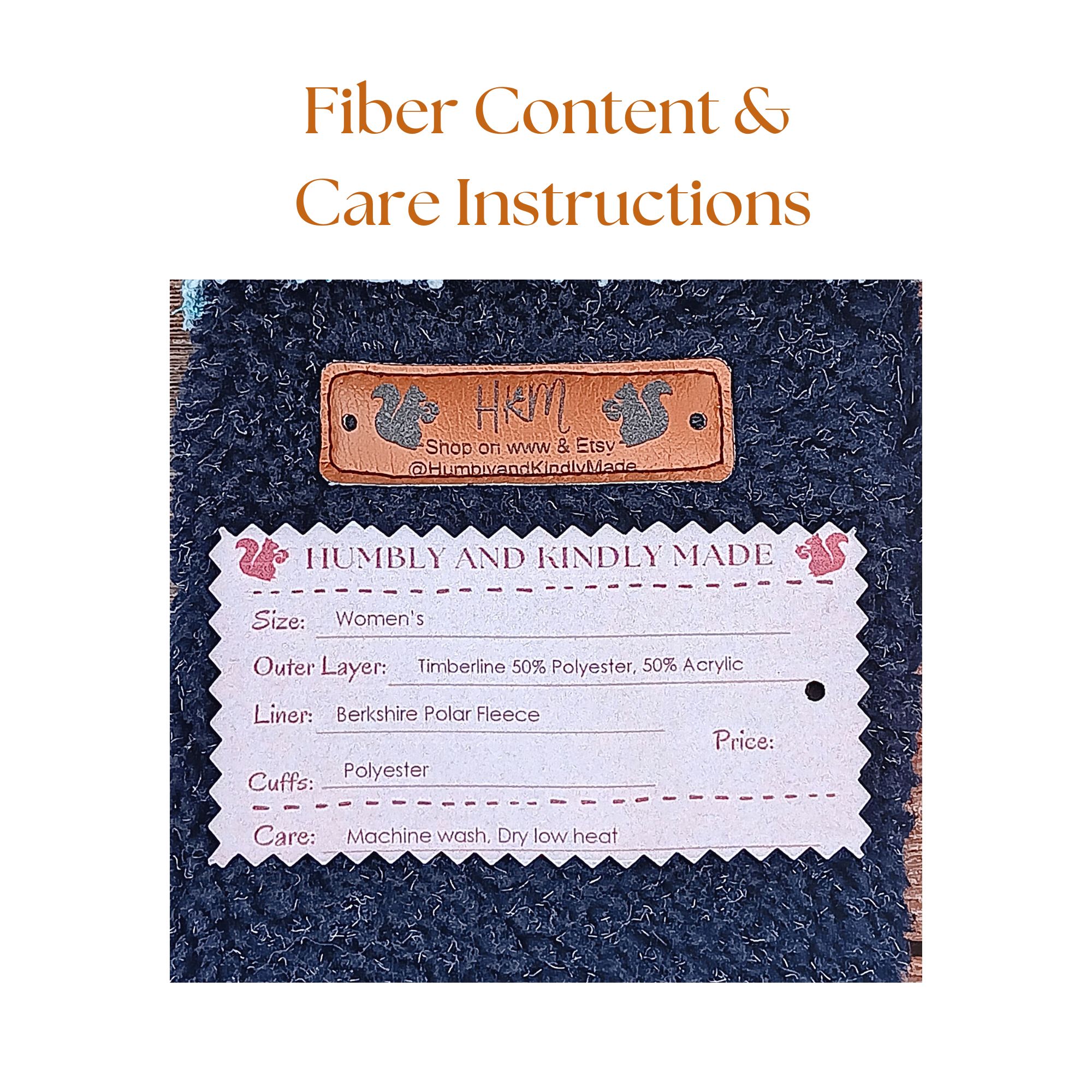 • Upcycled fleece mittens are handcrafted from recycled fleece pullovers and jackets. All fiber content is printed on the tag of each pair of mittens.