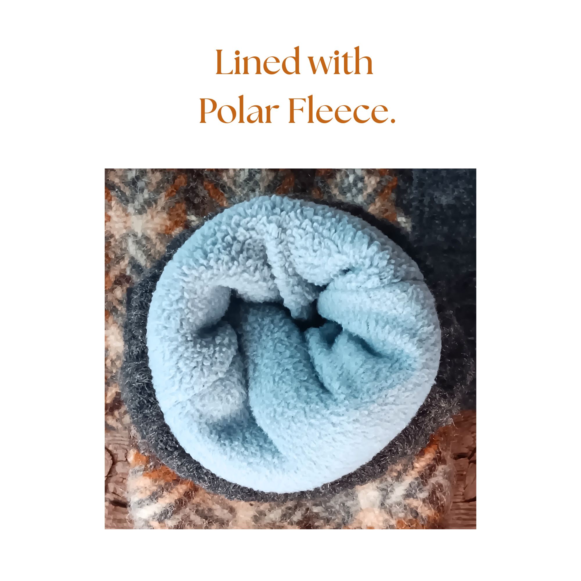 Double-Layered Construction: A outer wool shell and plush Polar Fleece lining provide lasting insulation.