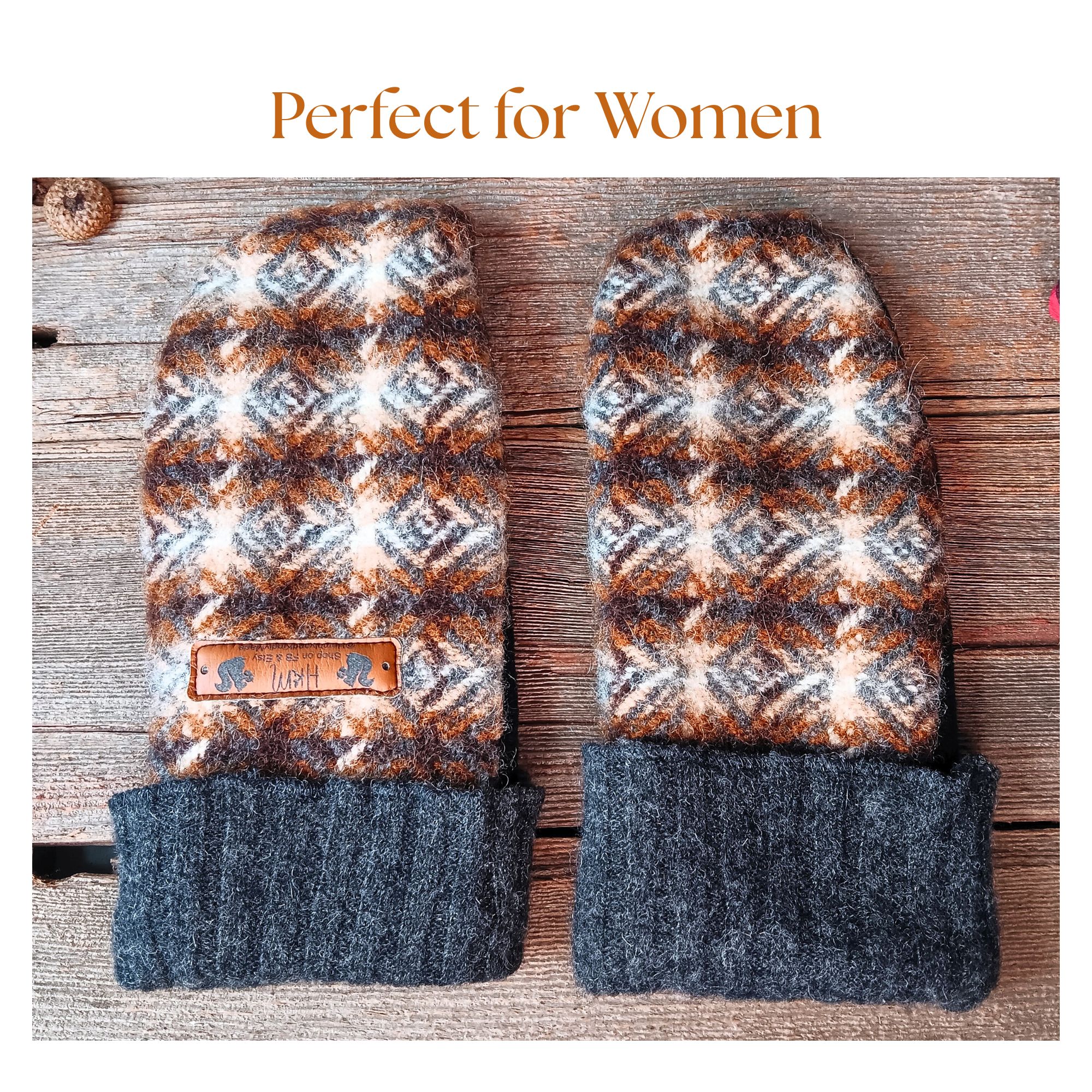 Women’s Pendleton Wool Mittens | Brown Double Layered Cozy Winter Gloves