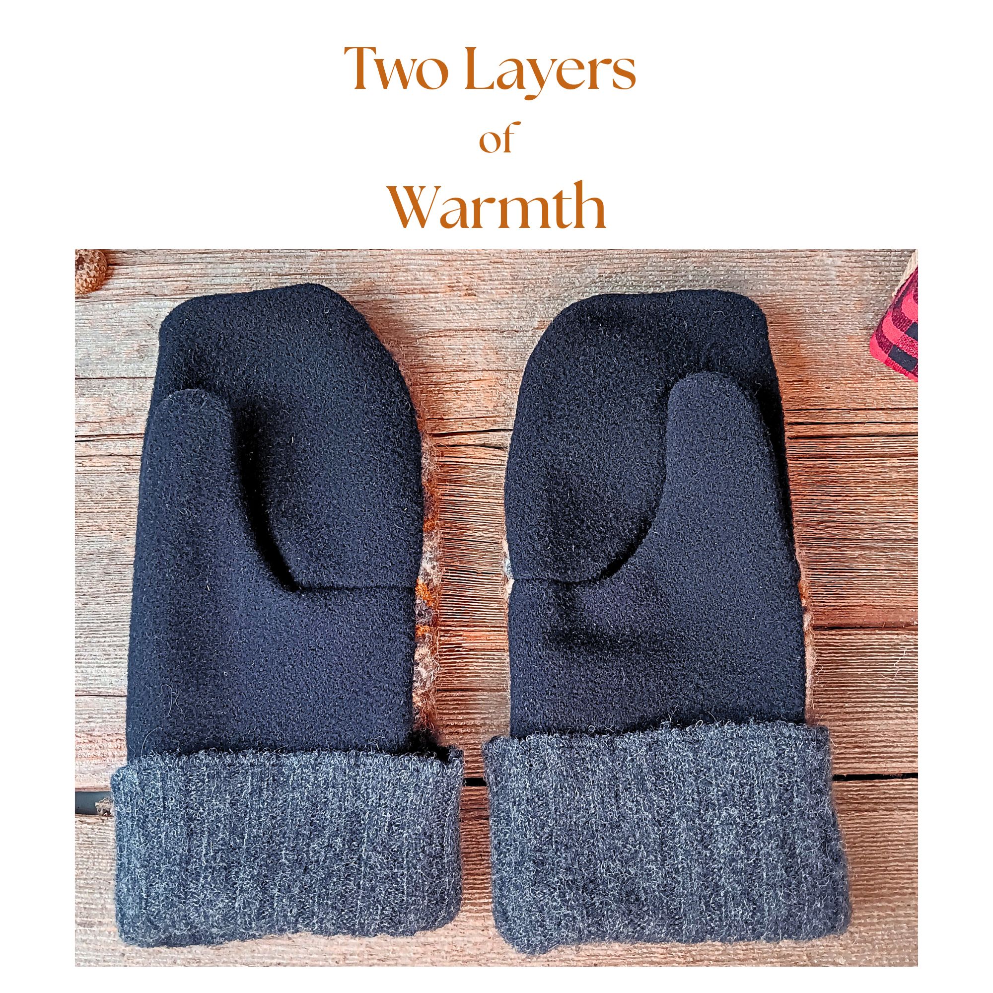 • All upcycled wool sweaters and wool garments are handpicked and inspected for quality of workmanship. Once felted, wools are carefully matched for color and weight then sewn together and lined with thick soft fleece. The result? One of a kind, wearable art, right at your fingertips!