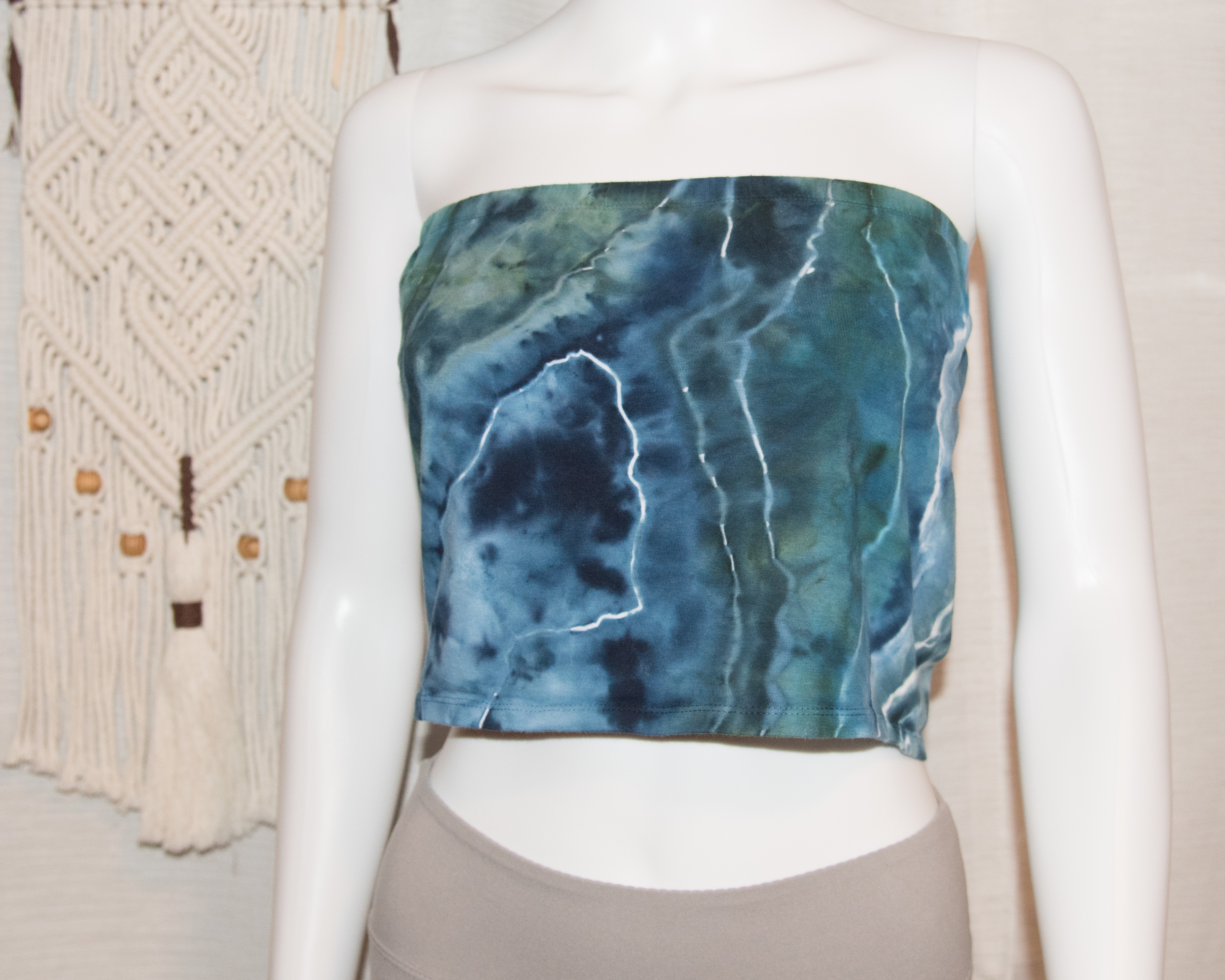 This tie dye has been created on a 92% Cotton / 8% Spandex women's tube top. Elastic on the top hem only.