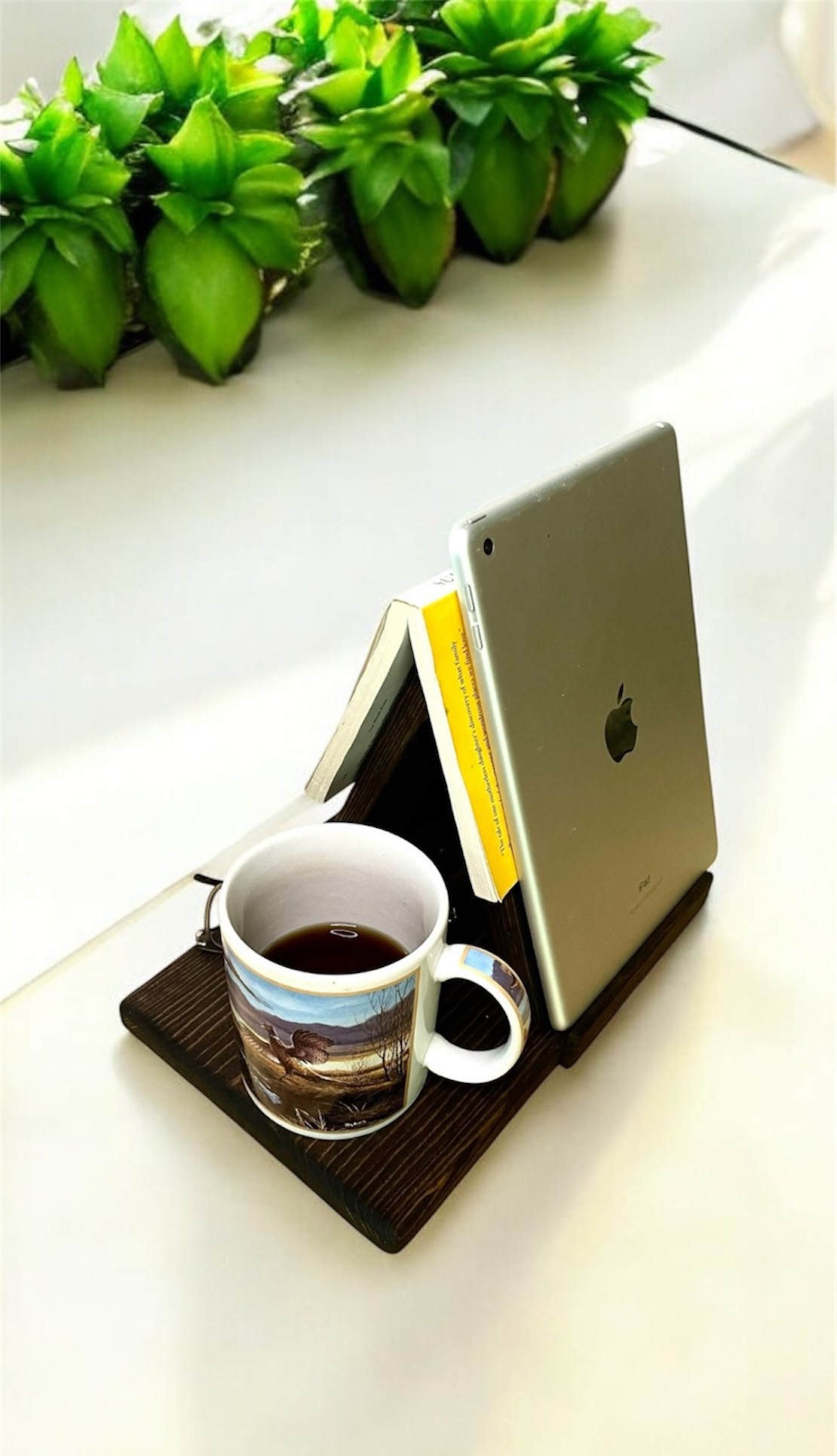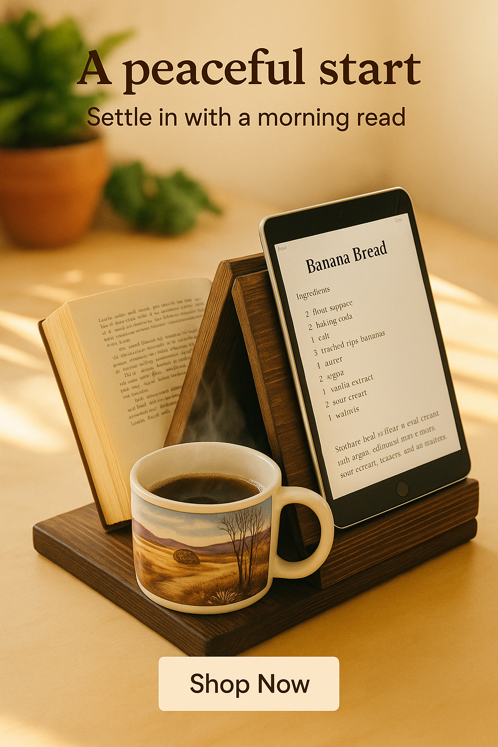 This wooden book holder is designed to keep your books, iPad, and e-readers upright and secure while you read and holds your place when done. It is durable and adds a touch of elegance to your reading experience. Say goodbye to propping up books and devices with this convenient stand.