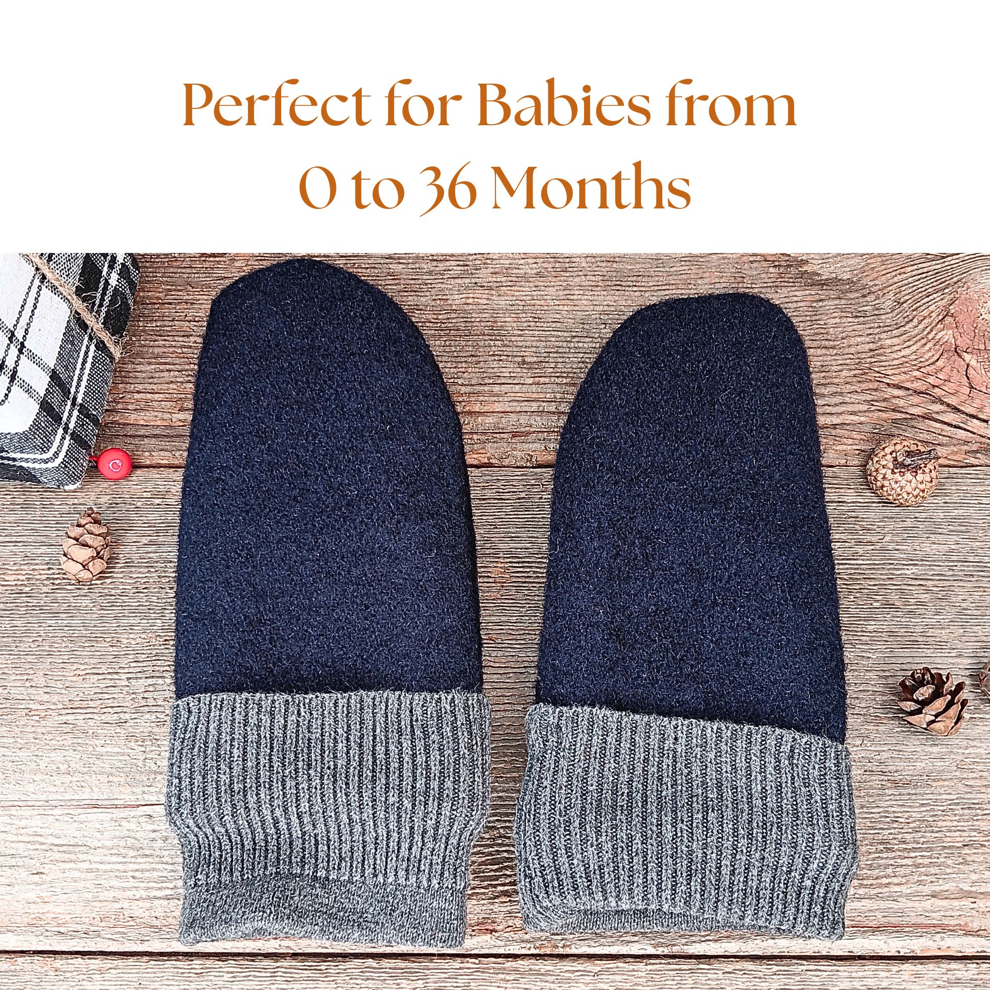 Wool Baby Mitten | Navy Blue Double Layered Mitt Fleece Lining | Handmade Warm Durable Girl Boy Winter Mittens, Babies Unisex Infant Toddler