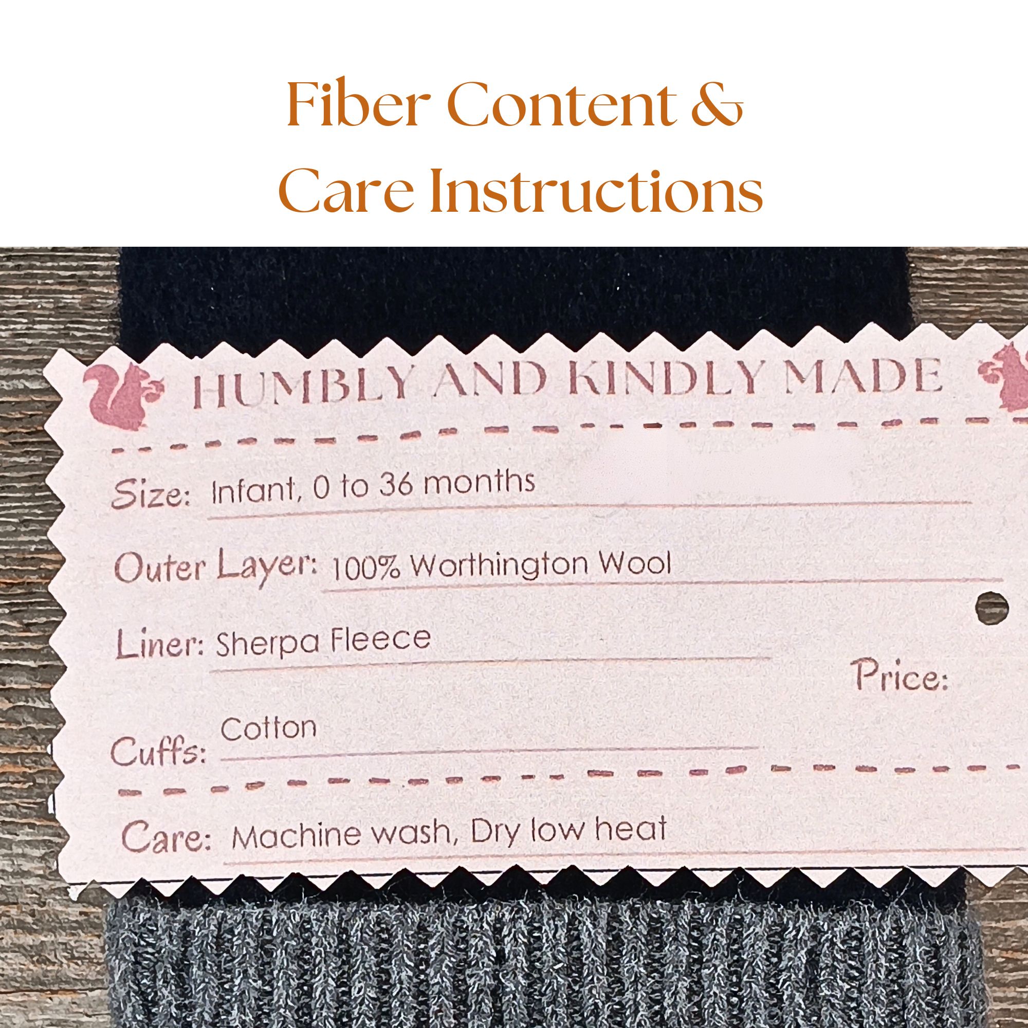 • Fiber Content: Details are included on each mitten’s tag and photos for transparency.