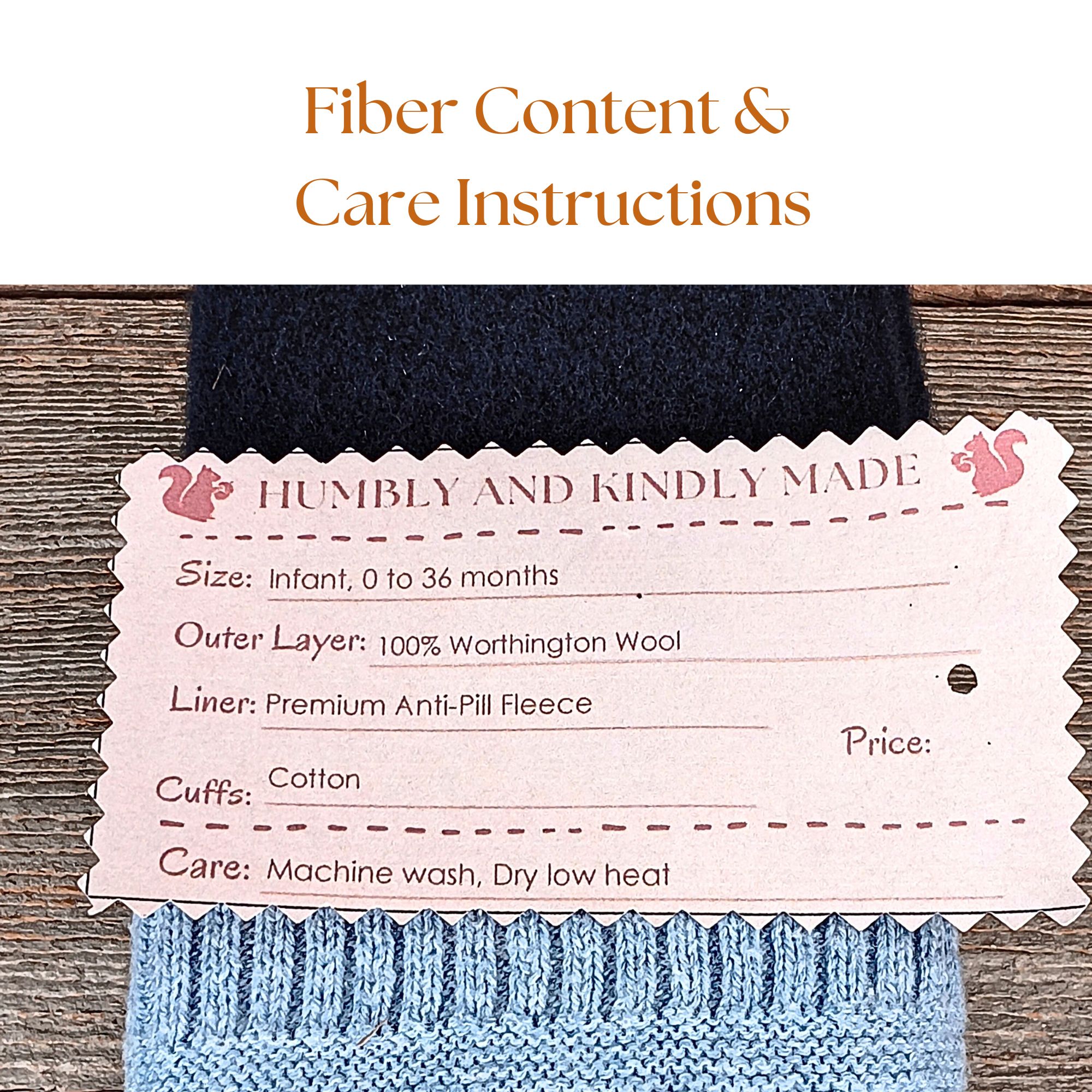 • Fiber Content: Details are included on each mitten’s tag and photos for transparency.