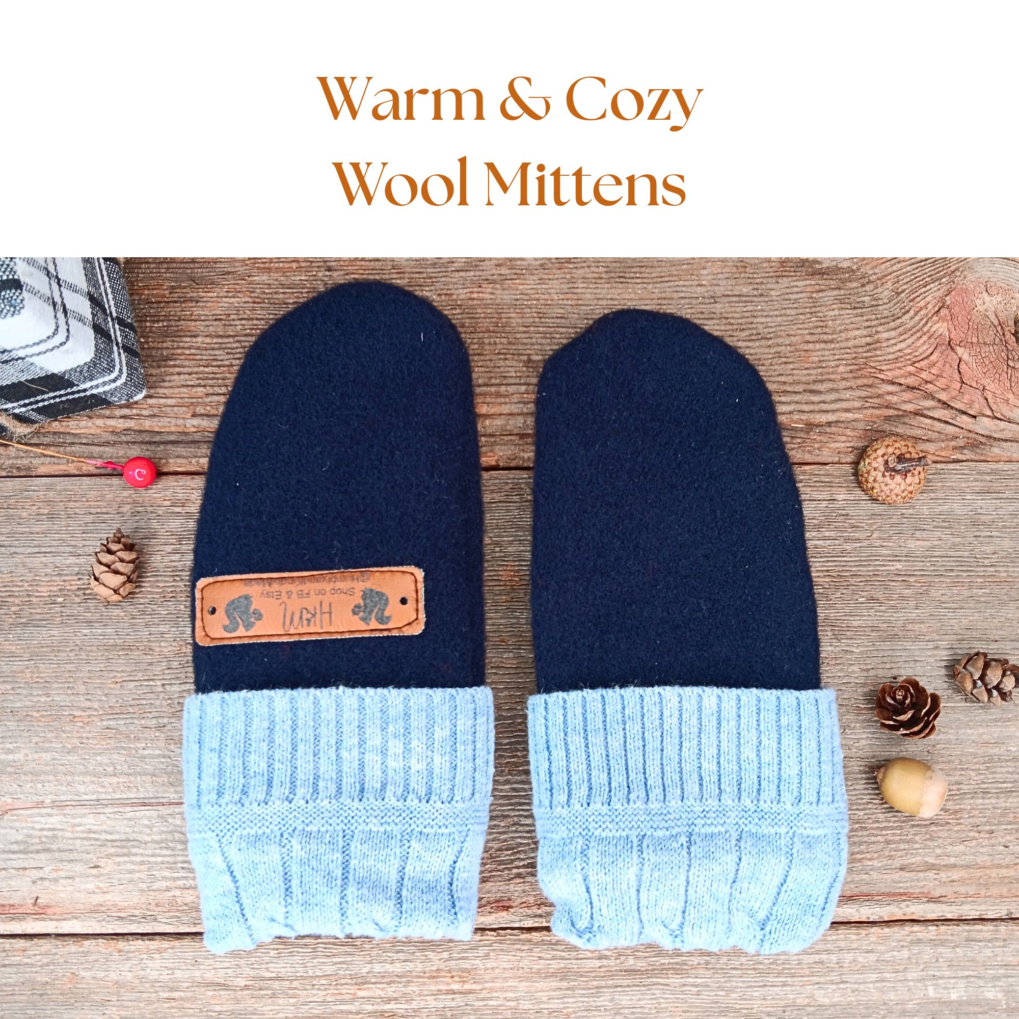 • Upcycled Wool: Each mitten is made from recycled wool garments, reducing waste and adding a unique character to every pair.