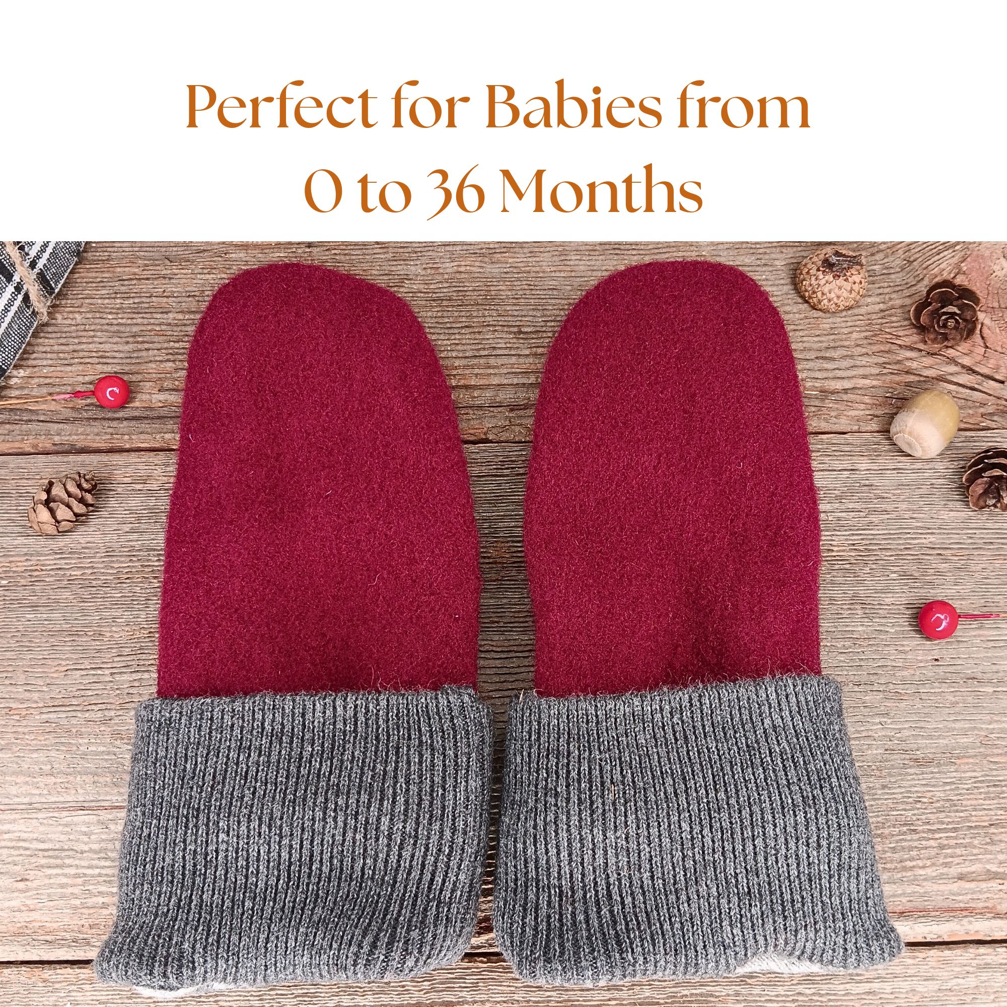 • Keep little hands warm with these thumbless, handmade wool mittens, perfect for babies from 0 to 36 months!