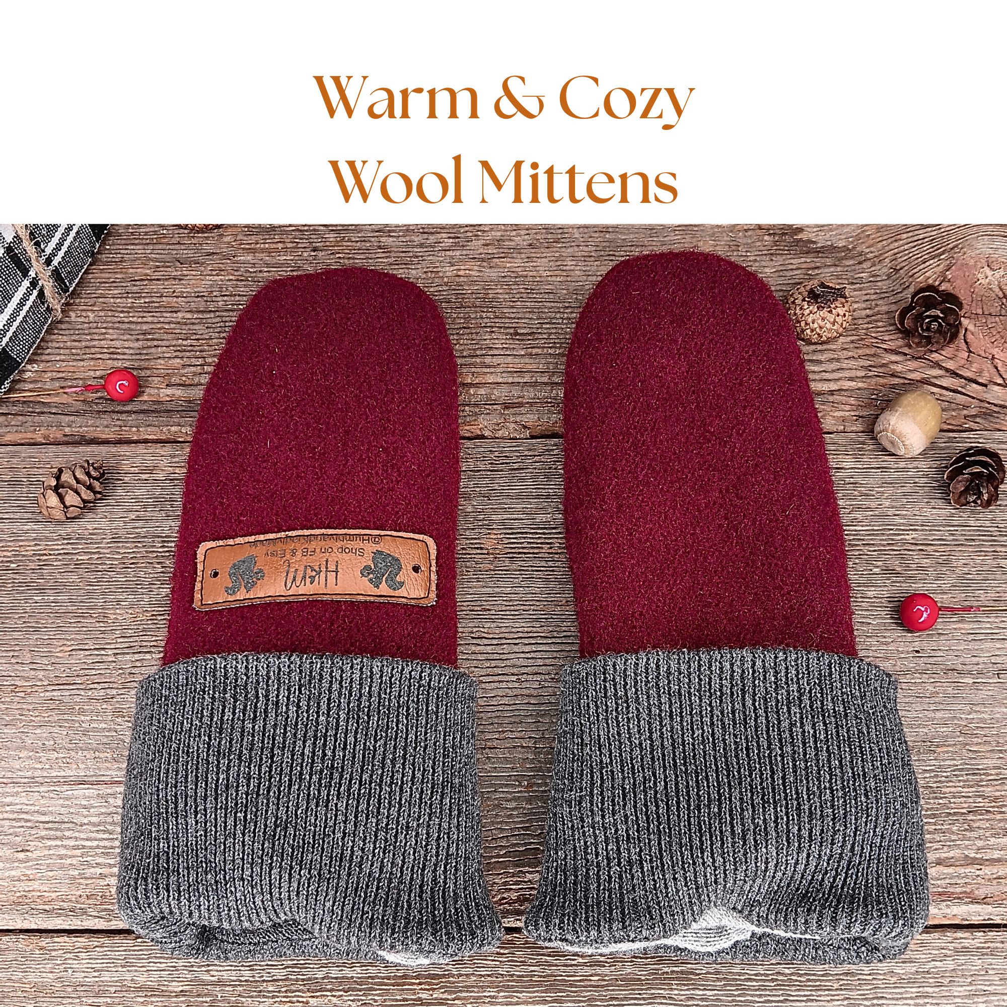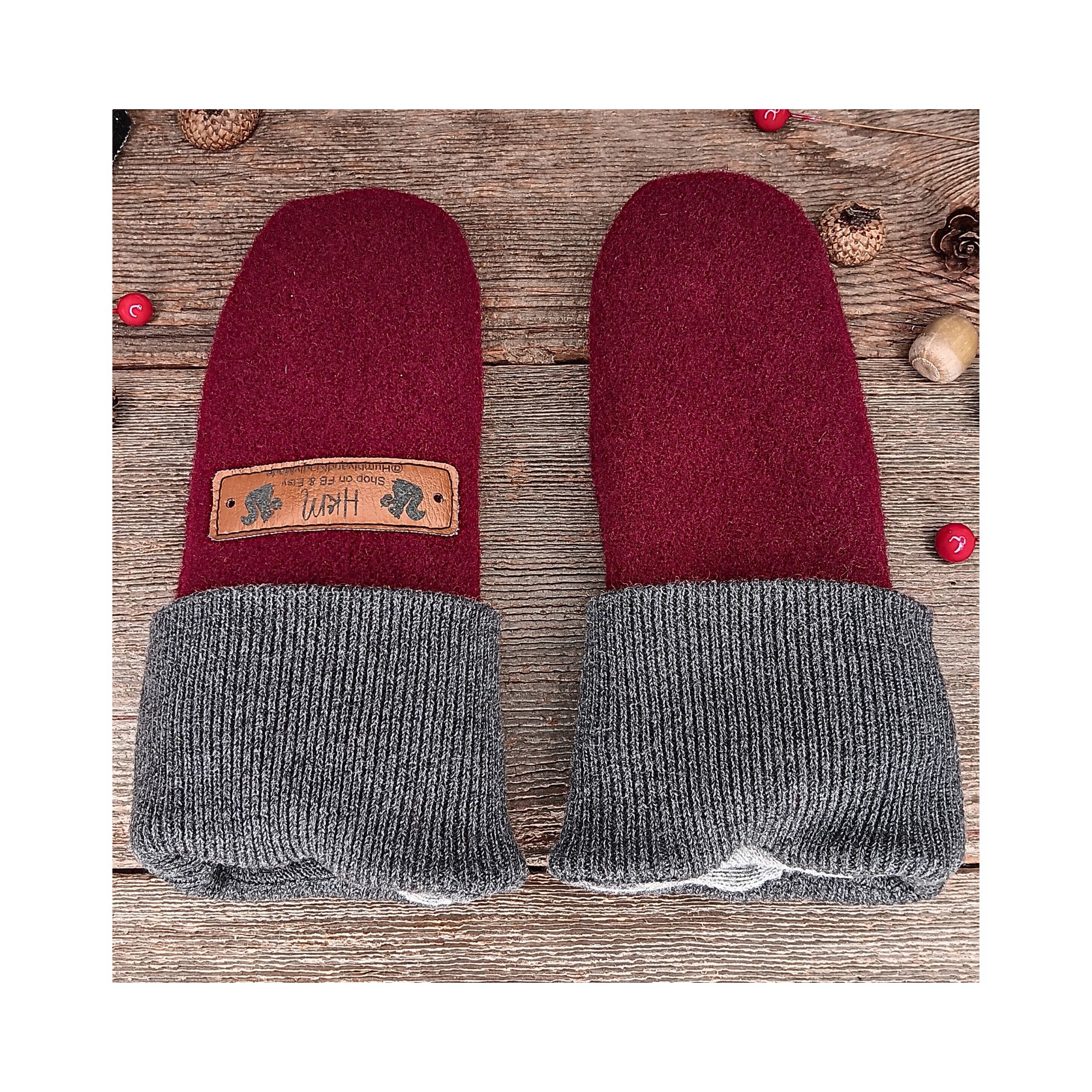 • Upcycled Wool: Each mitten is made from recycled wool garments, reducing waste and adding a unique character to every pair.