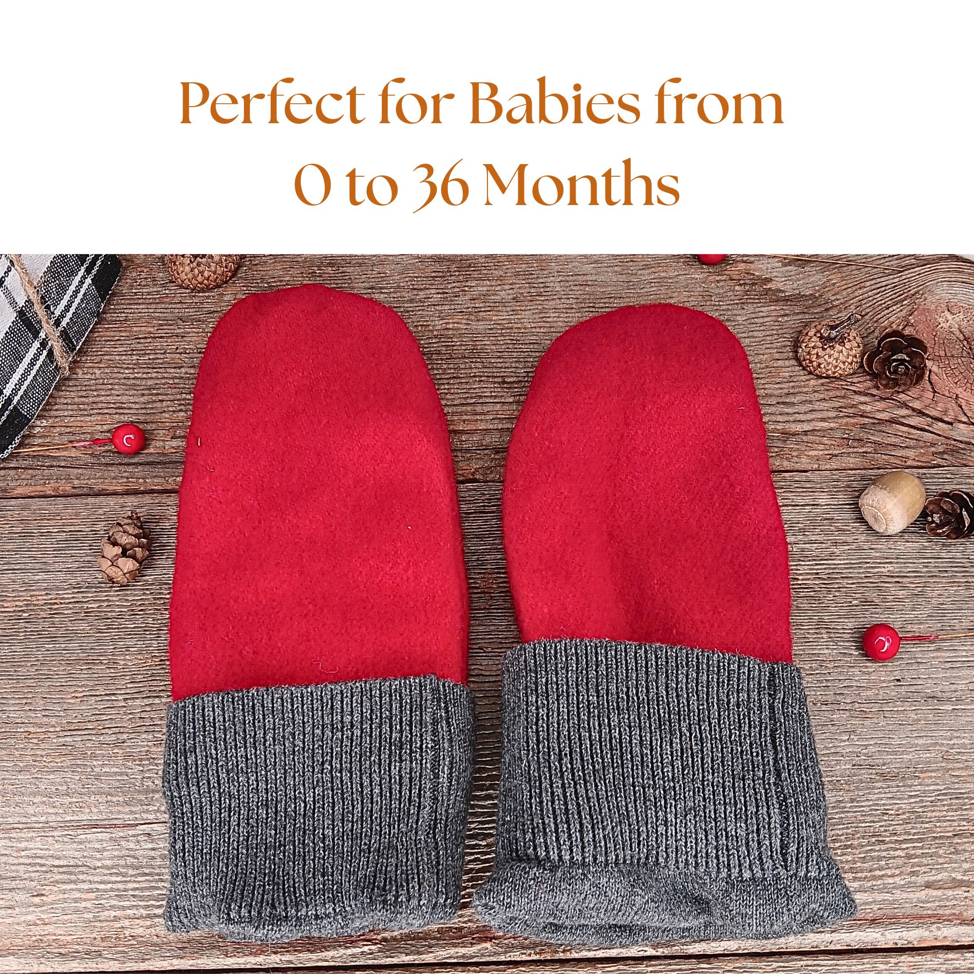 Wool Baby Mitten | Red Double Layered Mitt Fleece Lining | Handmade Warm Durable Girl Boy Winter Mittens, Babies Unisex Infant Toddler