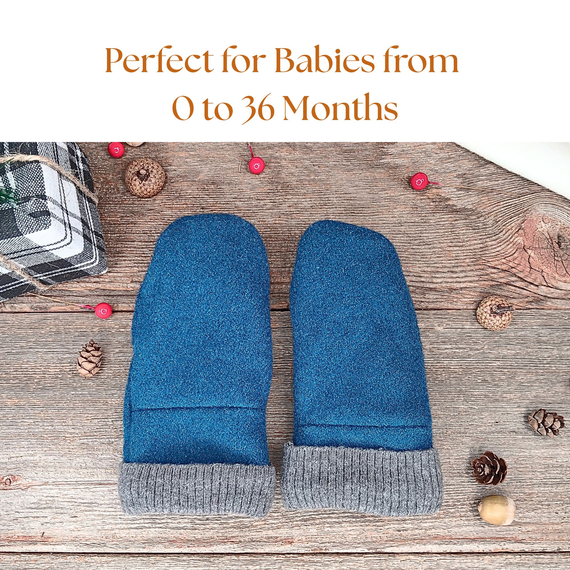 Wool Baby Mitten | Teal Blue Double Layered Mitt Fleece Lining | Handmade Warm Durable Girl Boy Winter Mittens, Babies Unisex Infant Toddler