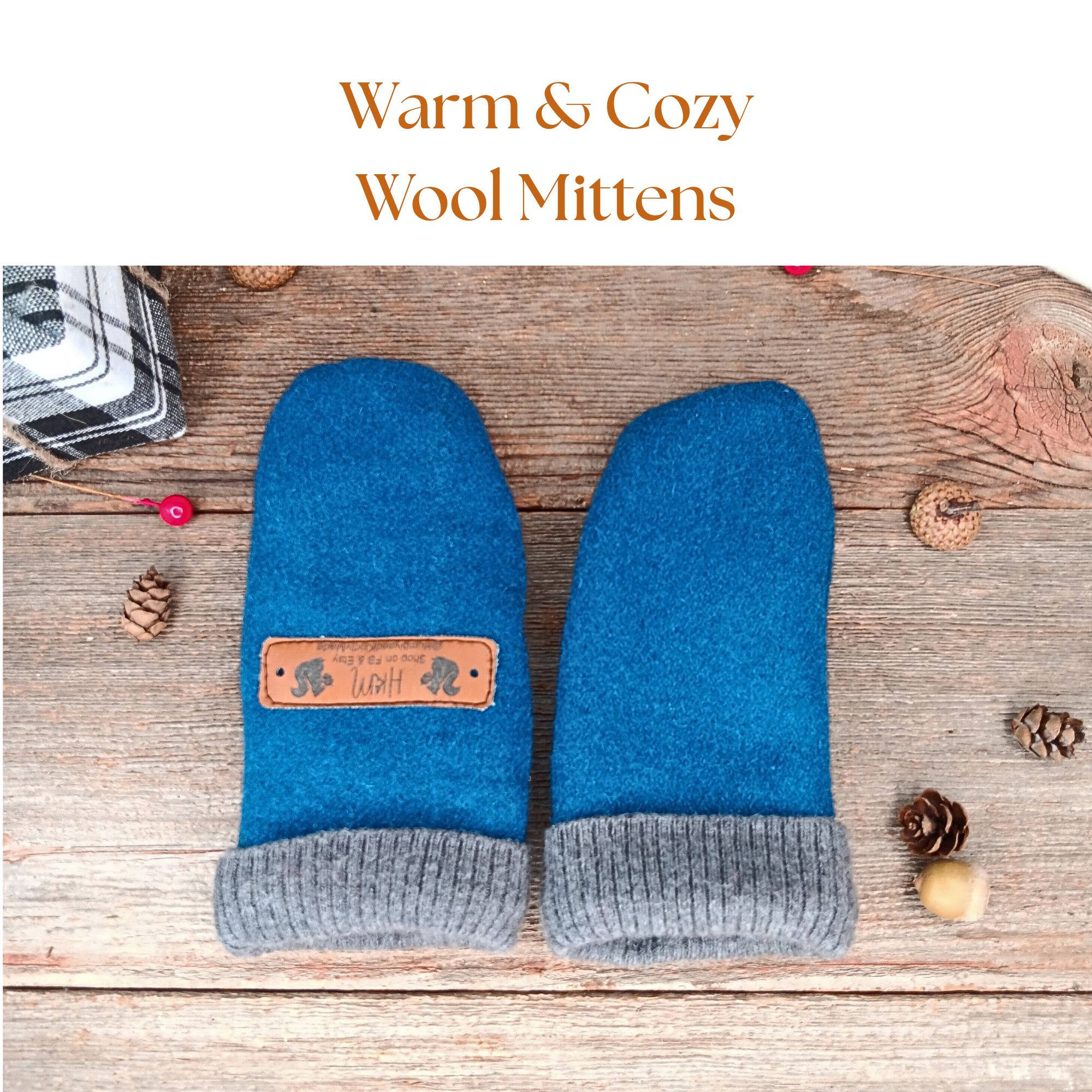 • Upcycled Wool: Each mitten is made from recycled wool garments, reducing waste and adding a unique character to every pair.