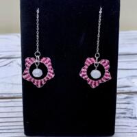 These beautiful and original design earrings are created by Bethany. 12mm hoops are hand beaded with glass seed beads. A delicate glass crystal bead hangs in the middle, and then finished with a stainless steal threader. Total length is about 5”. The stainless is durable and hypoallergenic. The beauty of these is truly difficult to capture in a photo. Try a pair - you will not be disappointed!