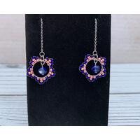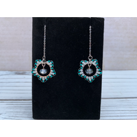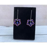 These beautiful and original design earrings are created by Bethany. 12mm hoops are hand beaded with glass seed beads. A delicate glass crystal bead hangs in the middle, and then finished with a stainless steal threader. Total length is about 5”. The stainless is durable and hypoallergenic. The beauty of these is truly difficult to capture in a photo. Try a pair - you will not be disappointed!