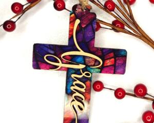 Grace Cross Ornament | Car Charm | 3-Layer Design with Staine...