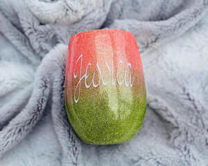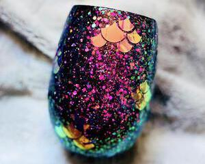Custom Glitter Mermaid stemless Wine Glass, personalized wine...