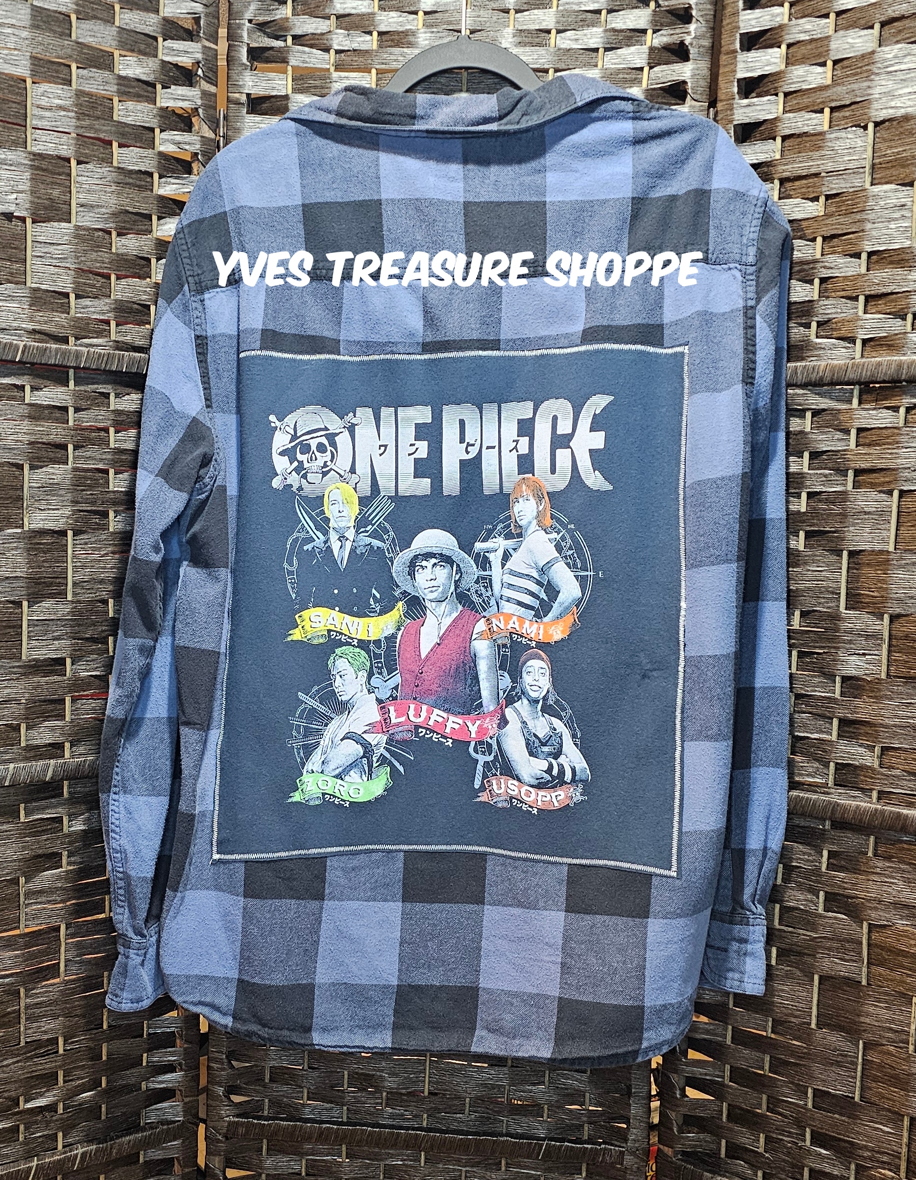 This is an Upcycled Urban XL Shirt. 26 inches across pit to pit. 29 inches long from top of shoulder to bottom of shirt. Embellished on back with a Fabric Panel.