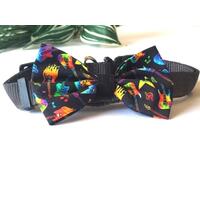 Add a pop of rockstar style to your furry friend with this multi-colored rock guitar pet bow tie! Handcrafted with vibrant hues and featuring an edgy guitar design, this bow tie is perfect for your fashion-forward pet. Whether they're strutting their stuff at a party or simply chilling at home, this accessory is sure to make a statement. Easy to attach to your pet's collar, this bow tie is a must-have for any music-loving pet owner. Give your beloved companion a touch of rock 'n' roll flair with this unique accessory!