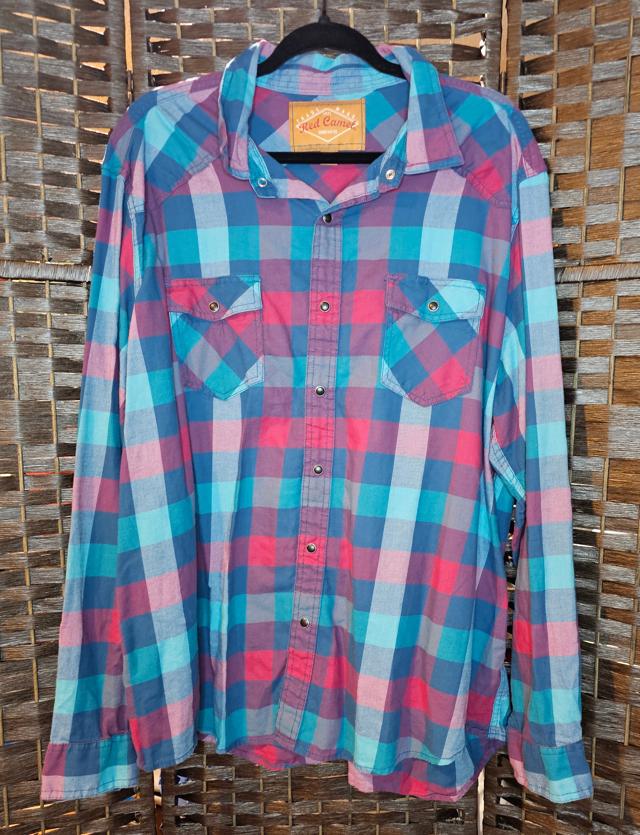 This is a thrifted XXL Red Camel top. 27 inches across pit to pit. 31 inches long from tip of shoulder to bottom of shirt. Embellished on back with a DTF Transfer.