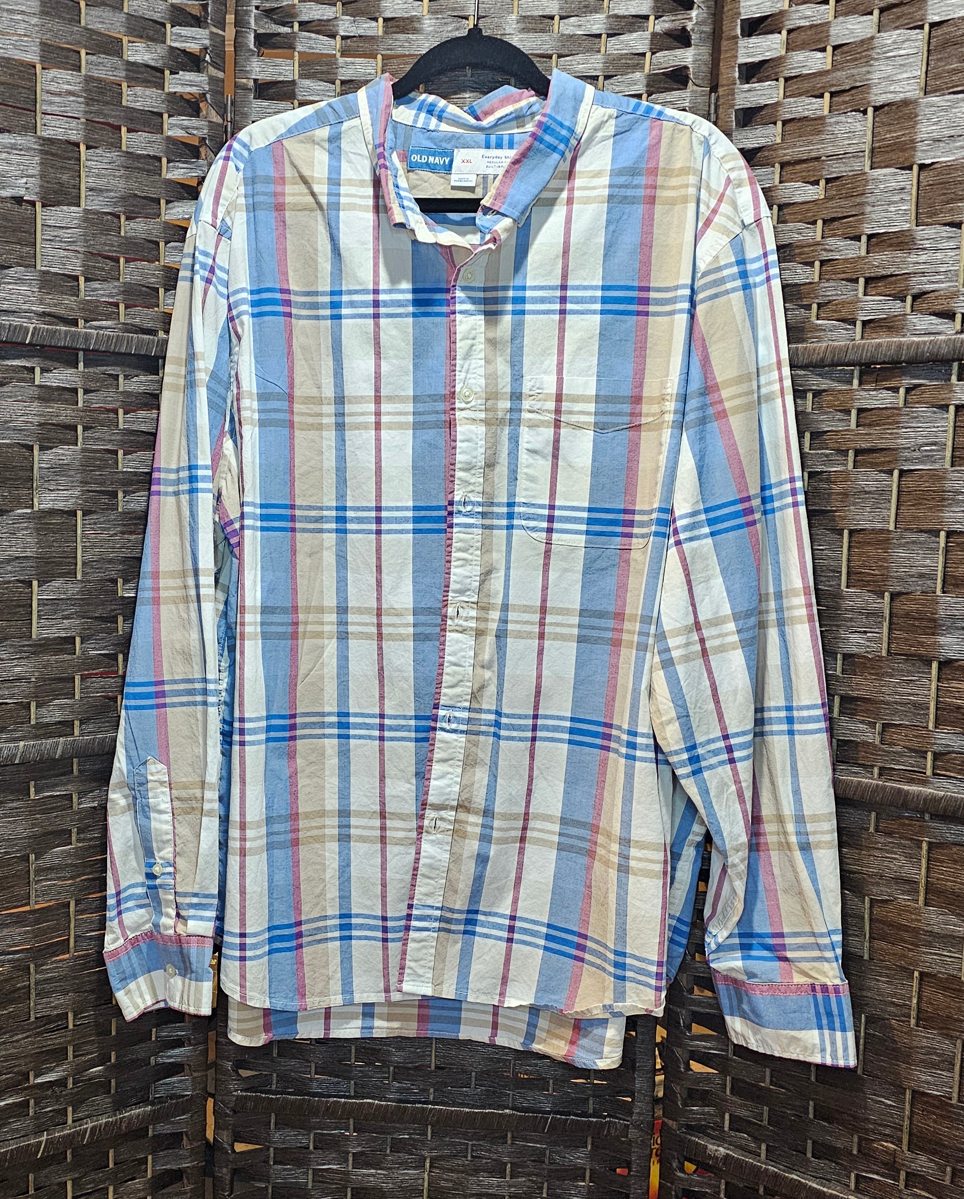 This is a new Upcycled Old Navy XXLarge Shirt. 28 inches across pit to pit. 32 inches long from top of shoulder to bottom of shirt. Embellished on back with a fabric panel.