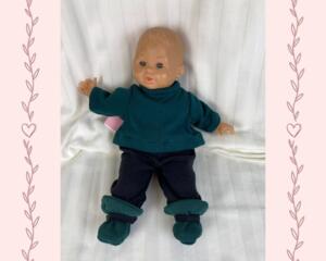 Green and Black Knit Small Baby Doll (12-14 inches) Shirt, Pa...