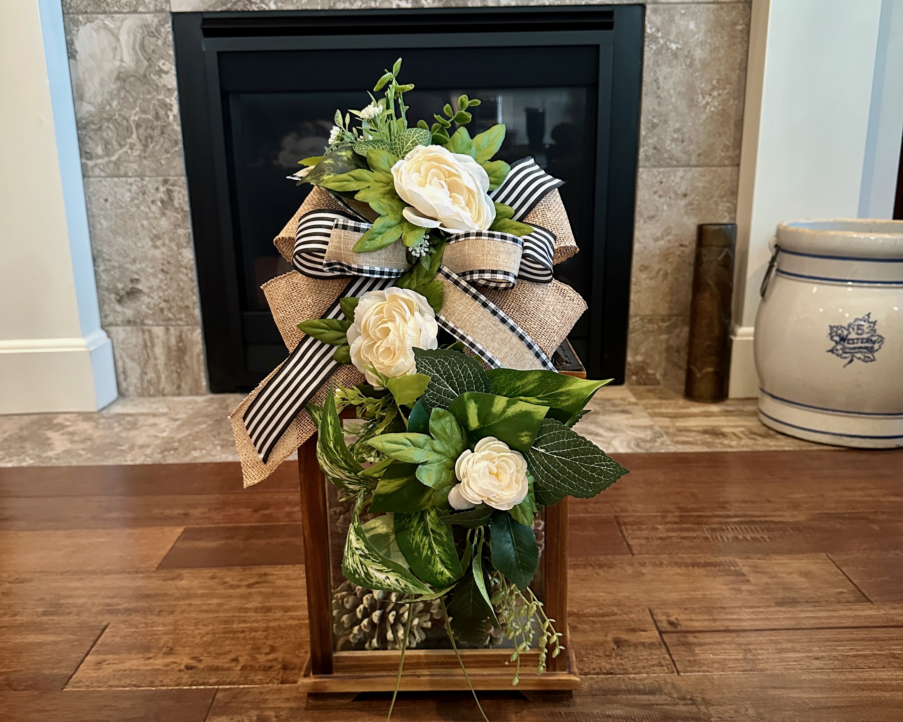 If you are looking for a year round, everyday lantern decoration, this neutral-color floral swag with cream ranunculus flowers will be a perfect addition to your home decor!