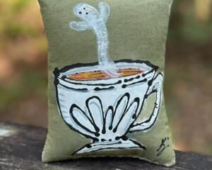 Teacup Ghost Hand Painted Mini Pillow YelliKelli