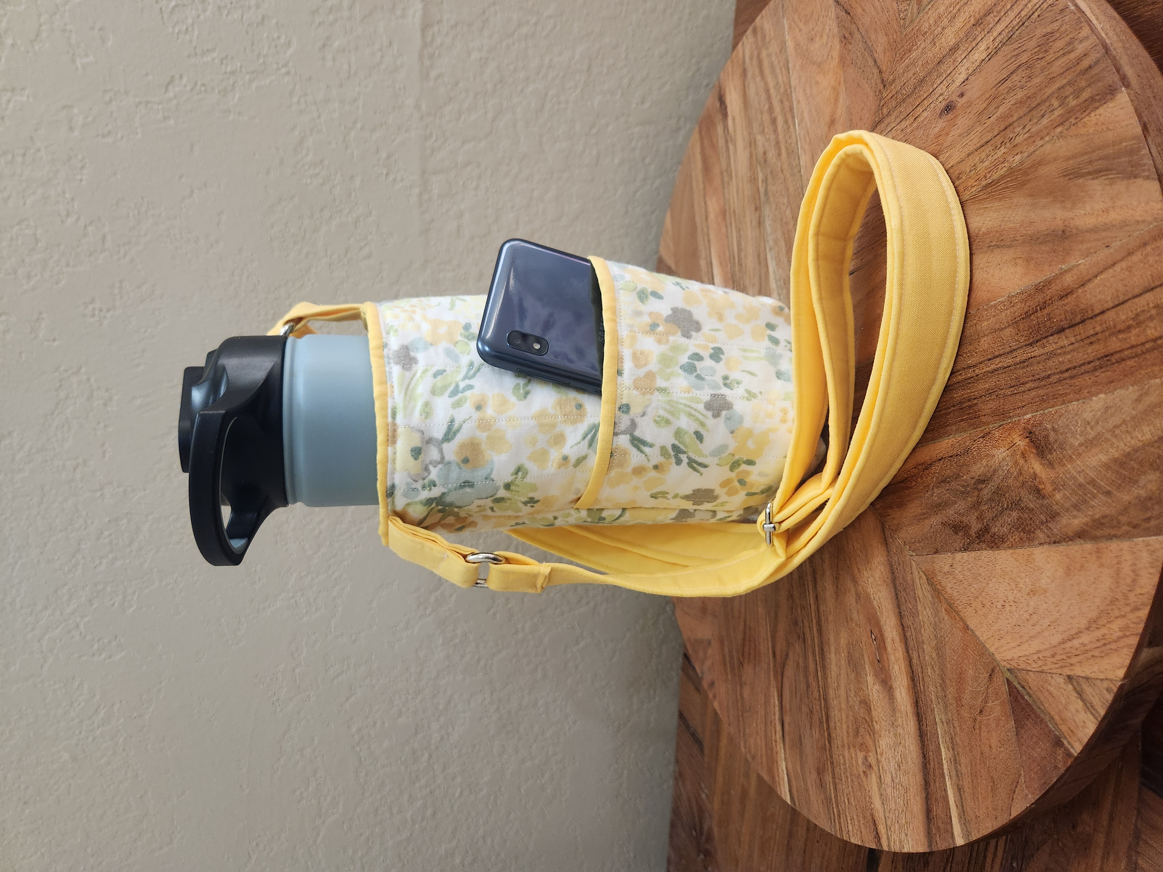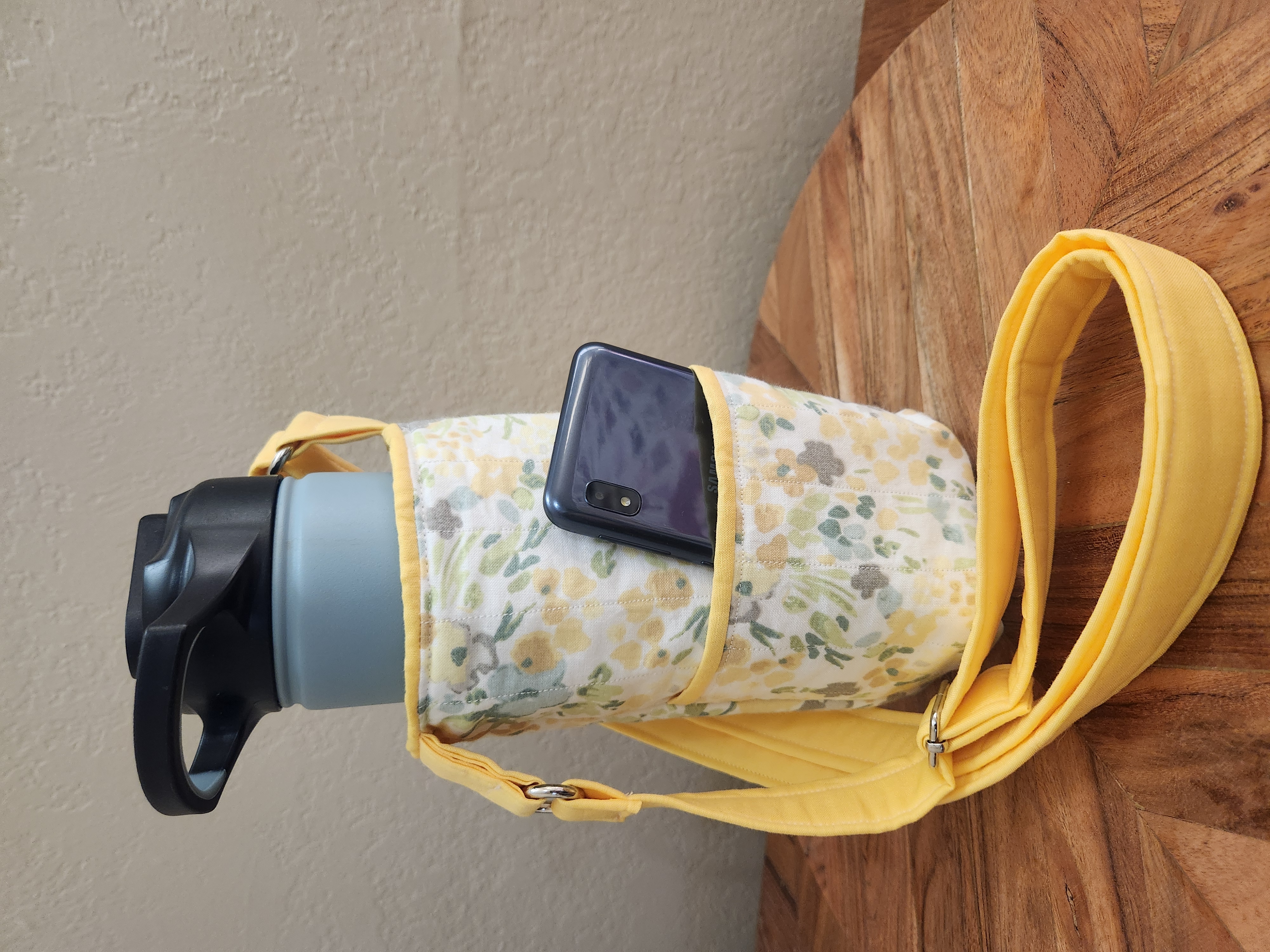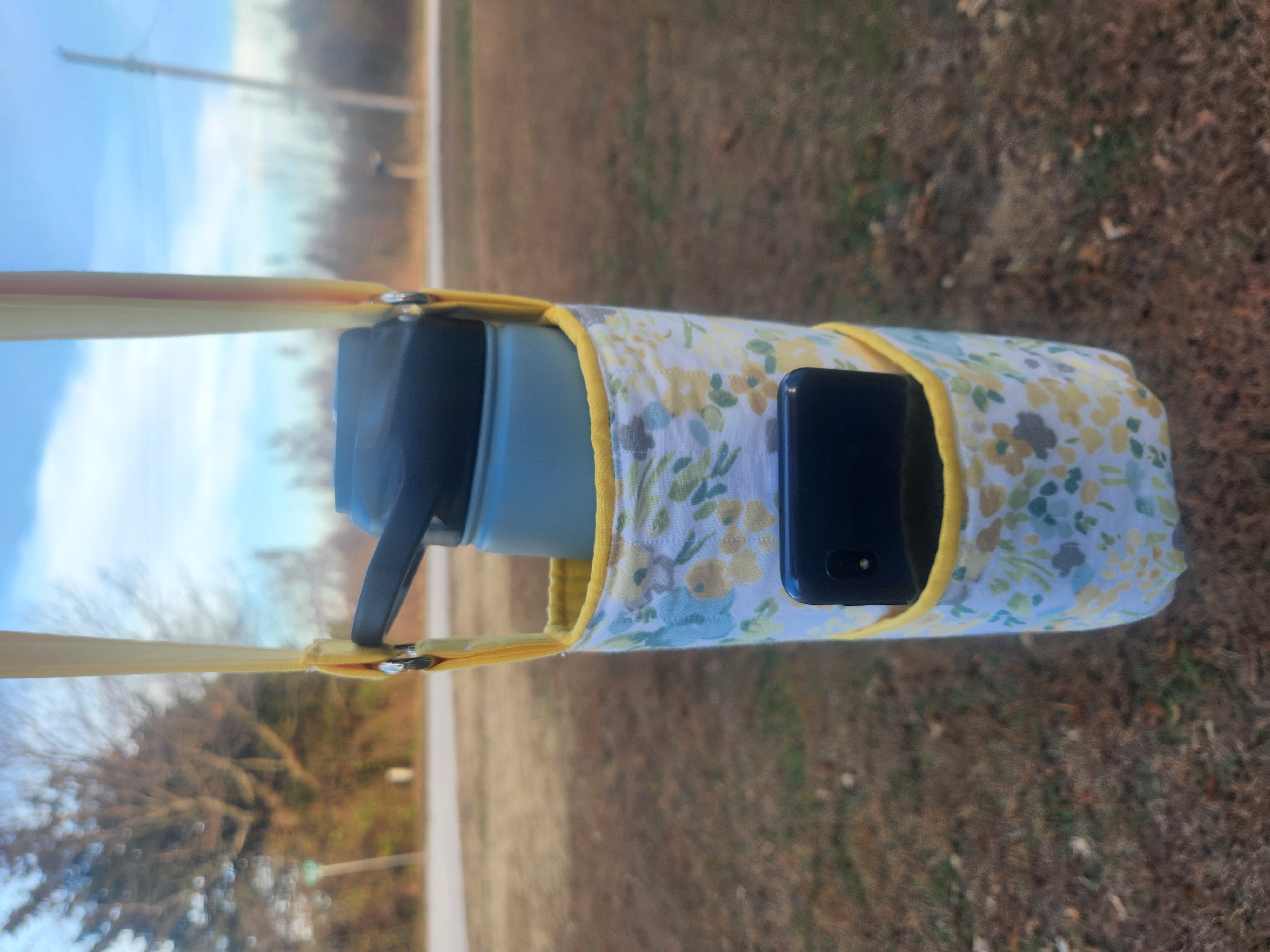 Handmade Water Bottle Holders with a pocket. Stay organized and hydrated on the go — all at once! Carry your water in comfort and style!
