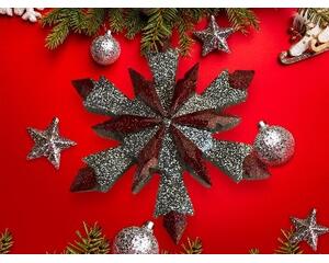 Snowflake Resin Ornament - Red and Silver Glitter