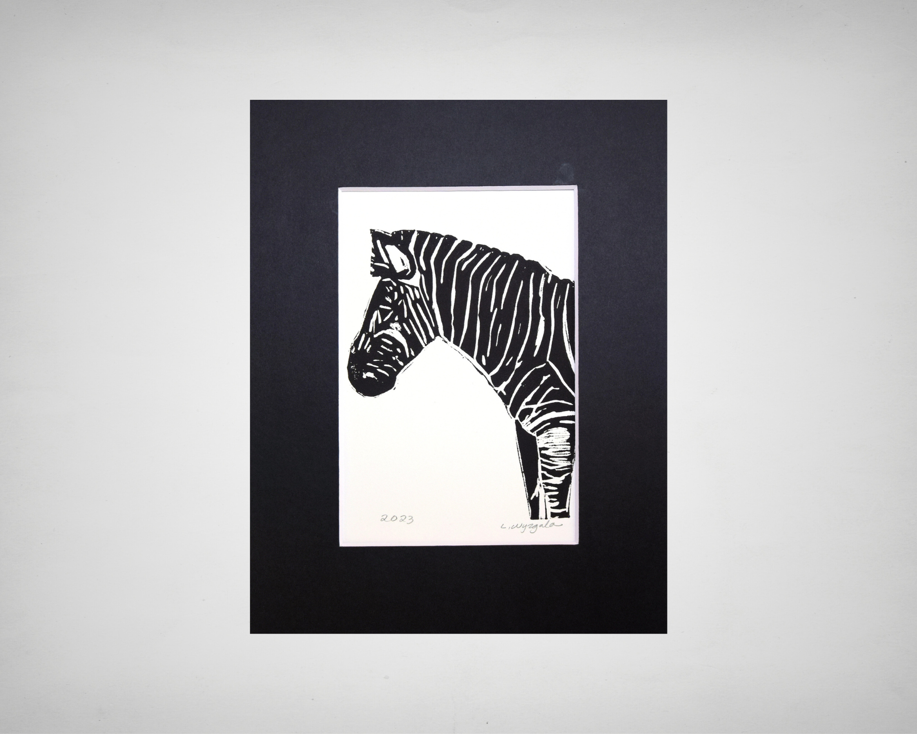 Zebra is a charming original linocut print that would delight any zebra lover.