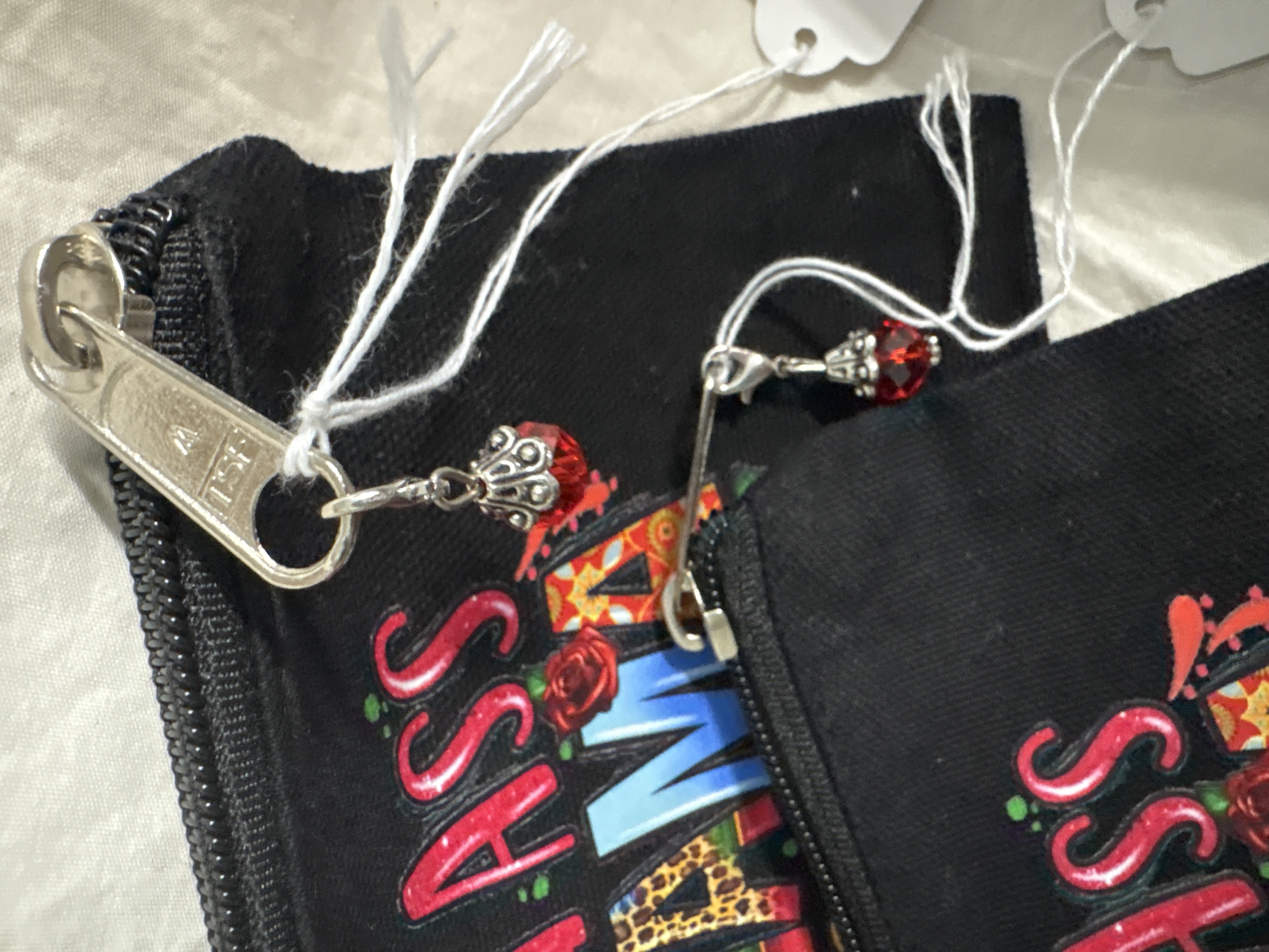 These little zip up canvas bags are 4” x 5” and have a cute zipper pull